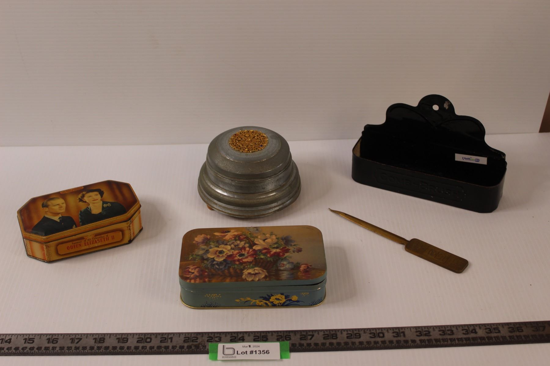 Souvenir Tin of Queen Elizabeth II Coronation, Vintage Music Box, Tins & Letter Opener