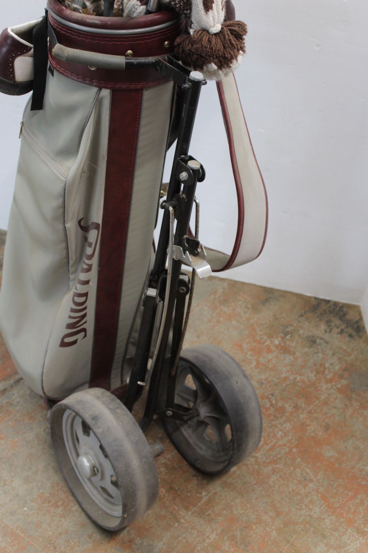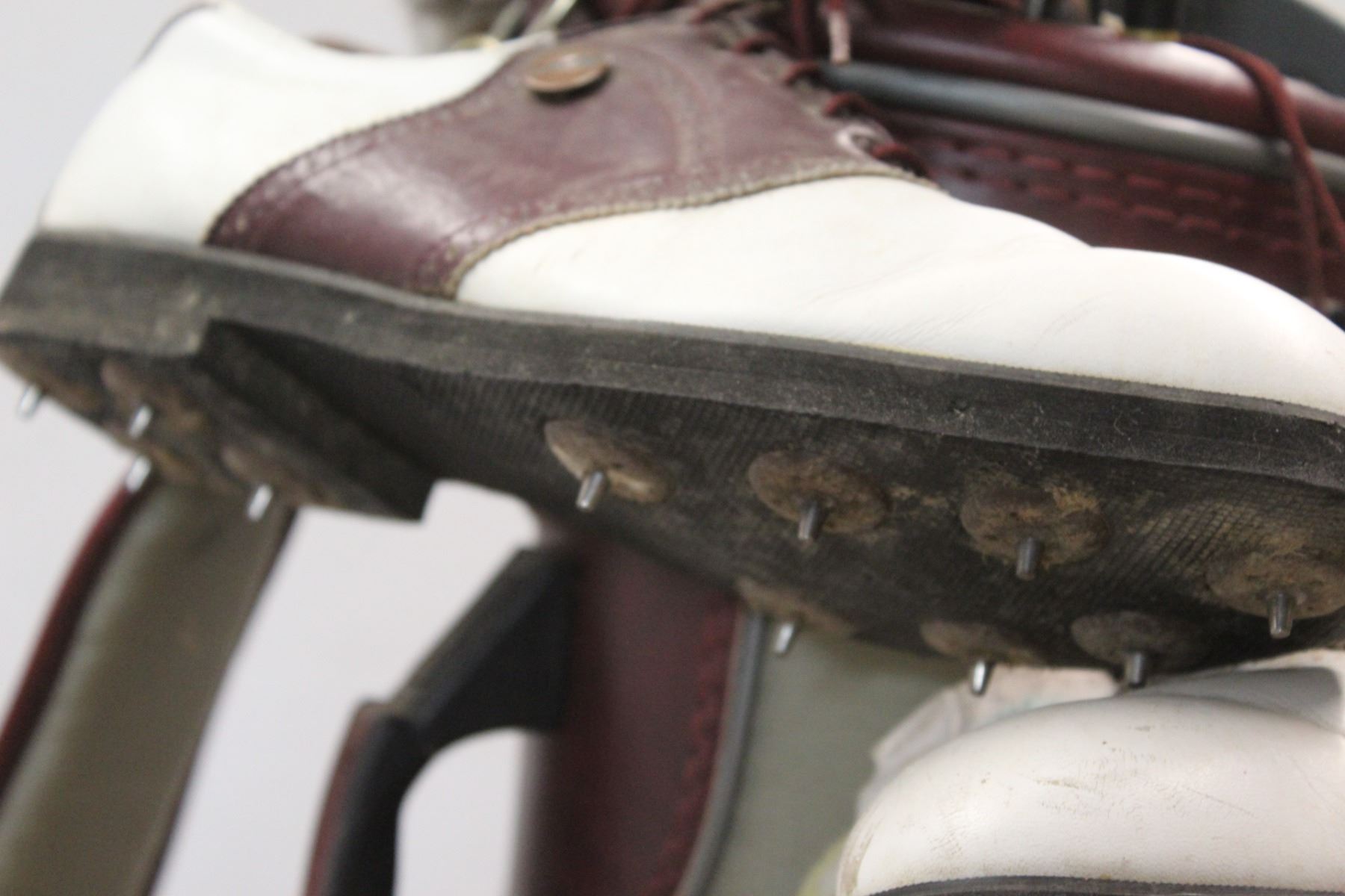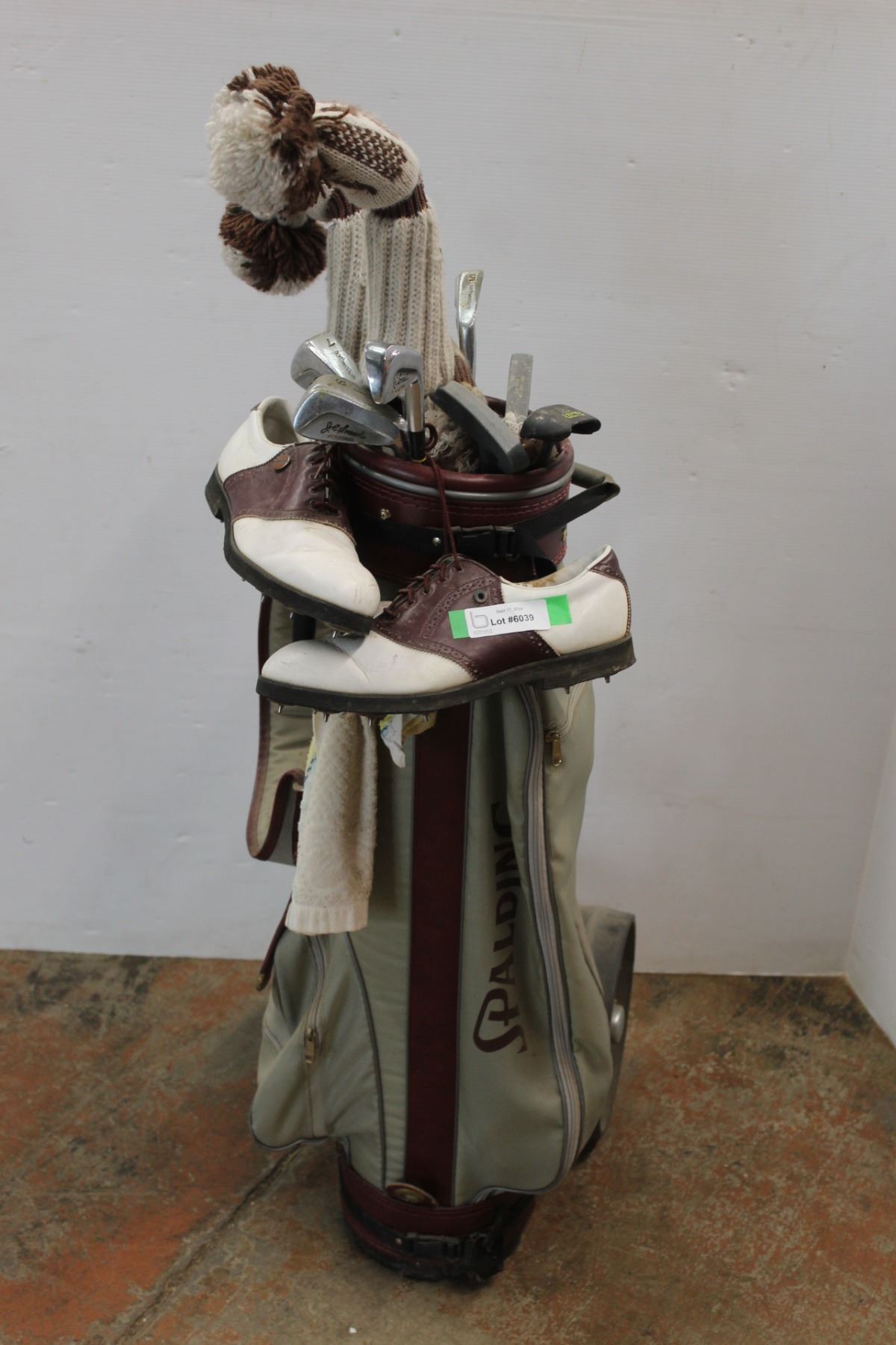 * Spaulding Wheeled Golf Club Bag & Various Clubs & Men's Golf Shoes Approx 11.5