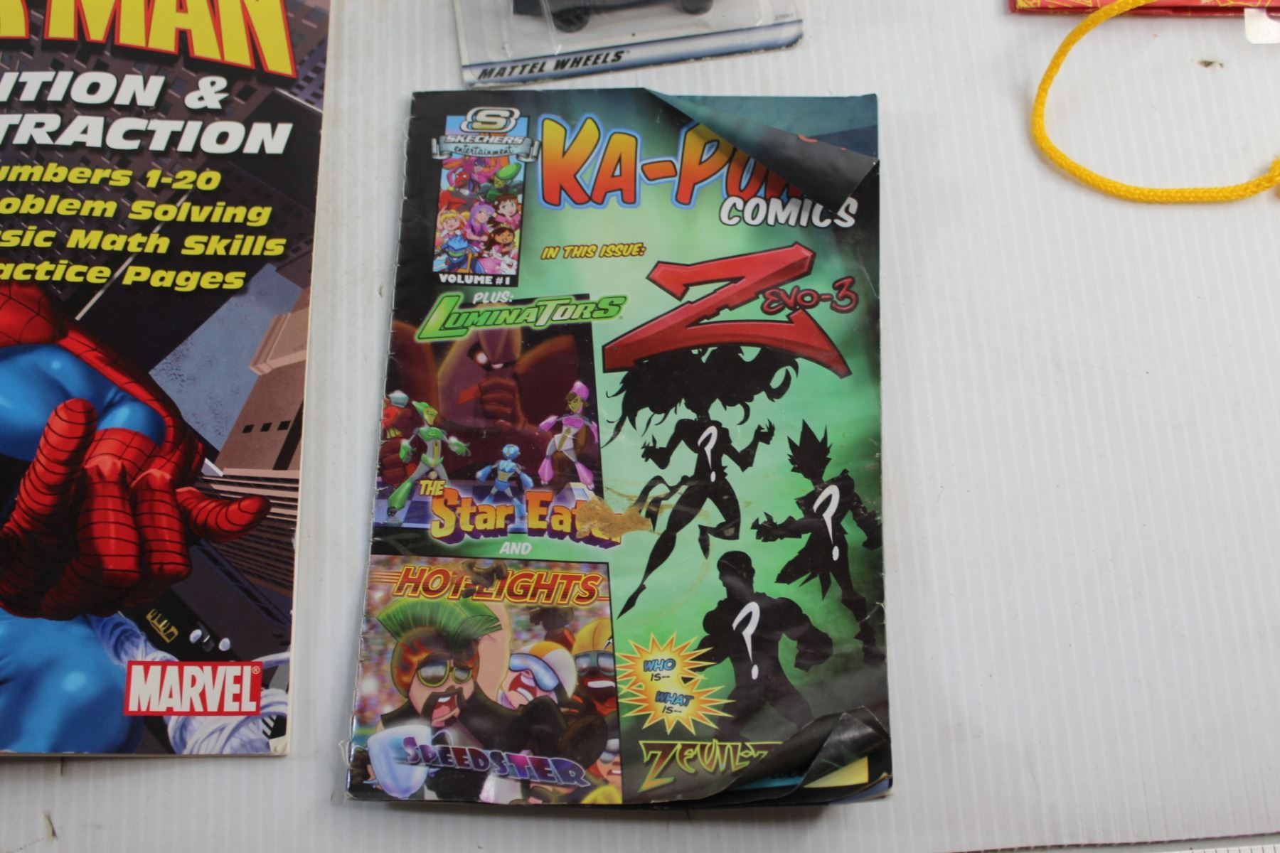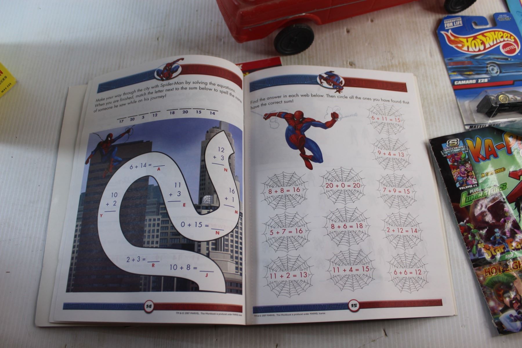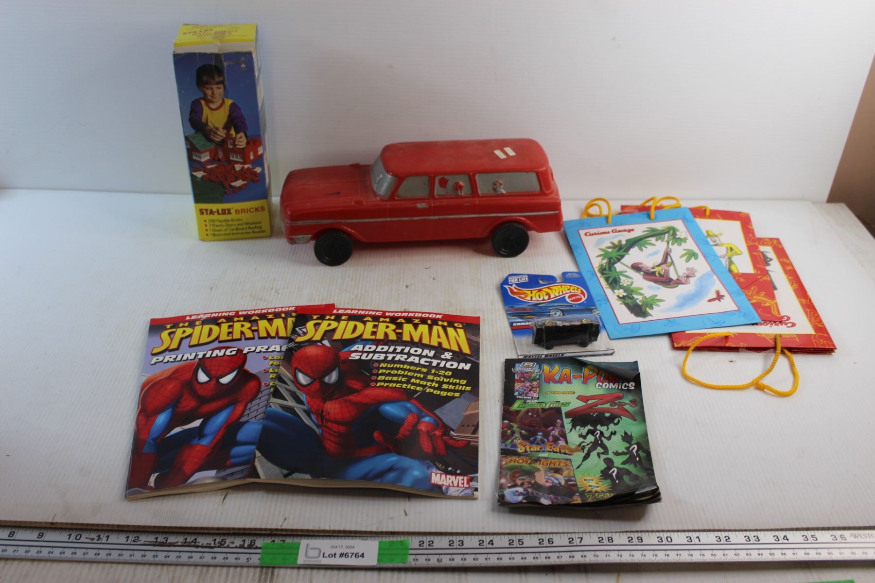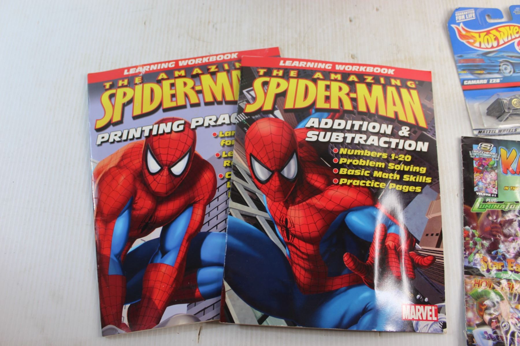 Spider Man Learning Books, Sta-Lox Bricks, Toy Car, Hot Wheels Camaro Z28 and Gift Bags