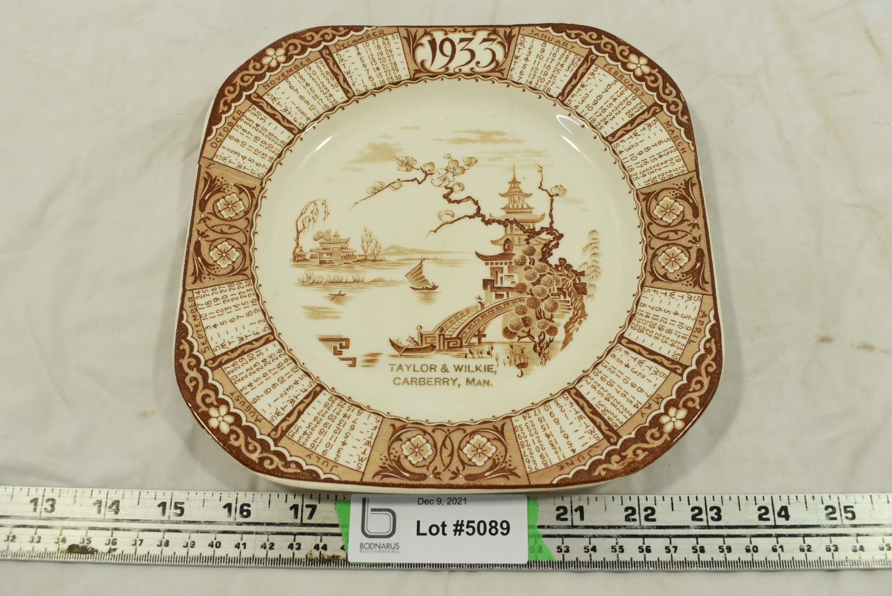 Square 1933 Advertising Plate – Carberry, MB - Taylor & Wilkie