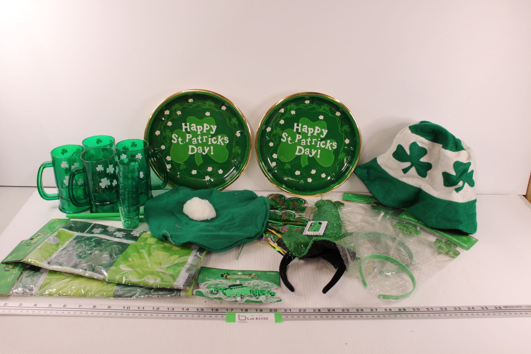 St. Patrick's Day Lot: Cups, Shot glasses, Headbands, Hats, Plates