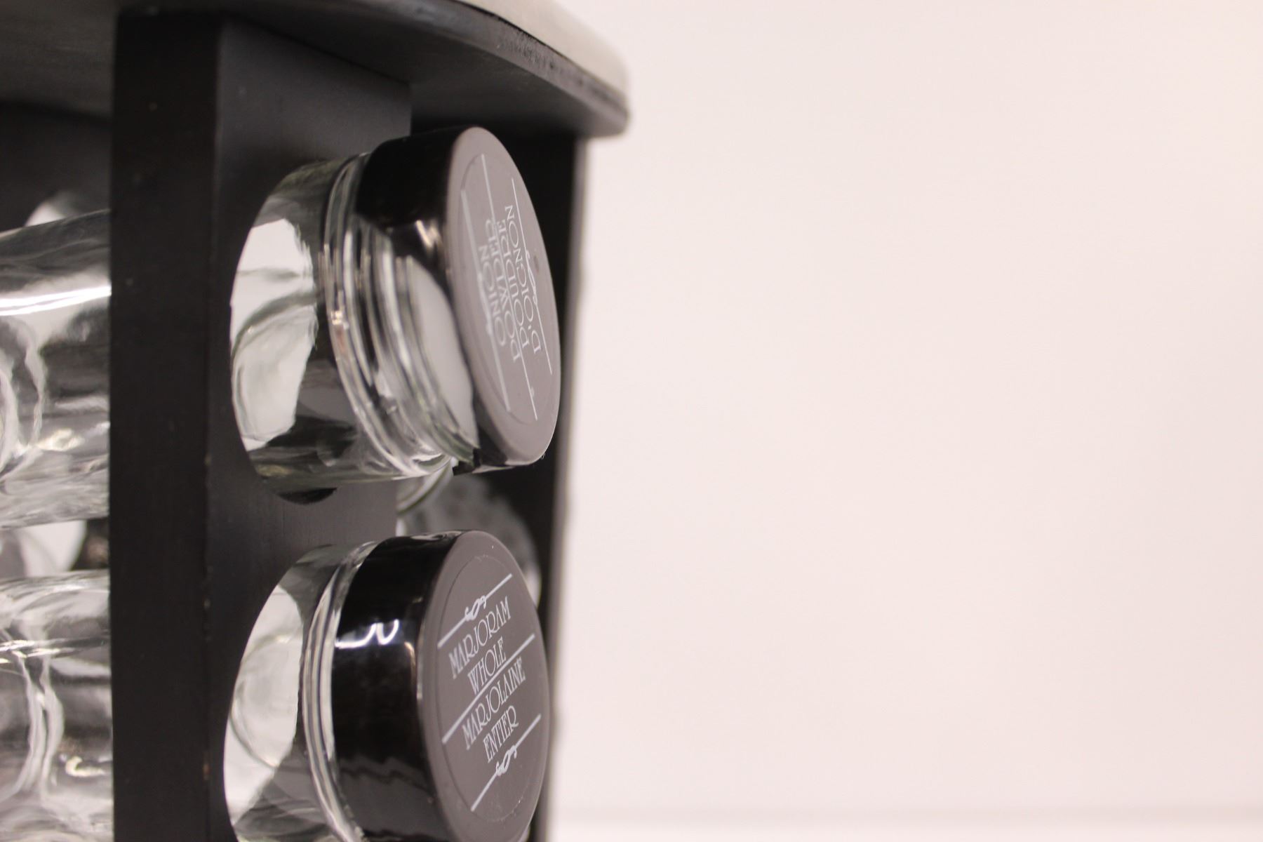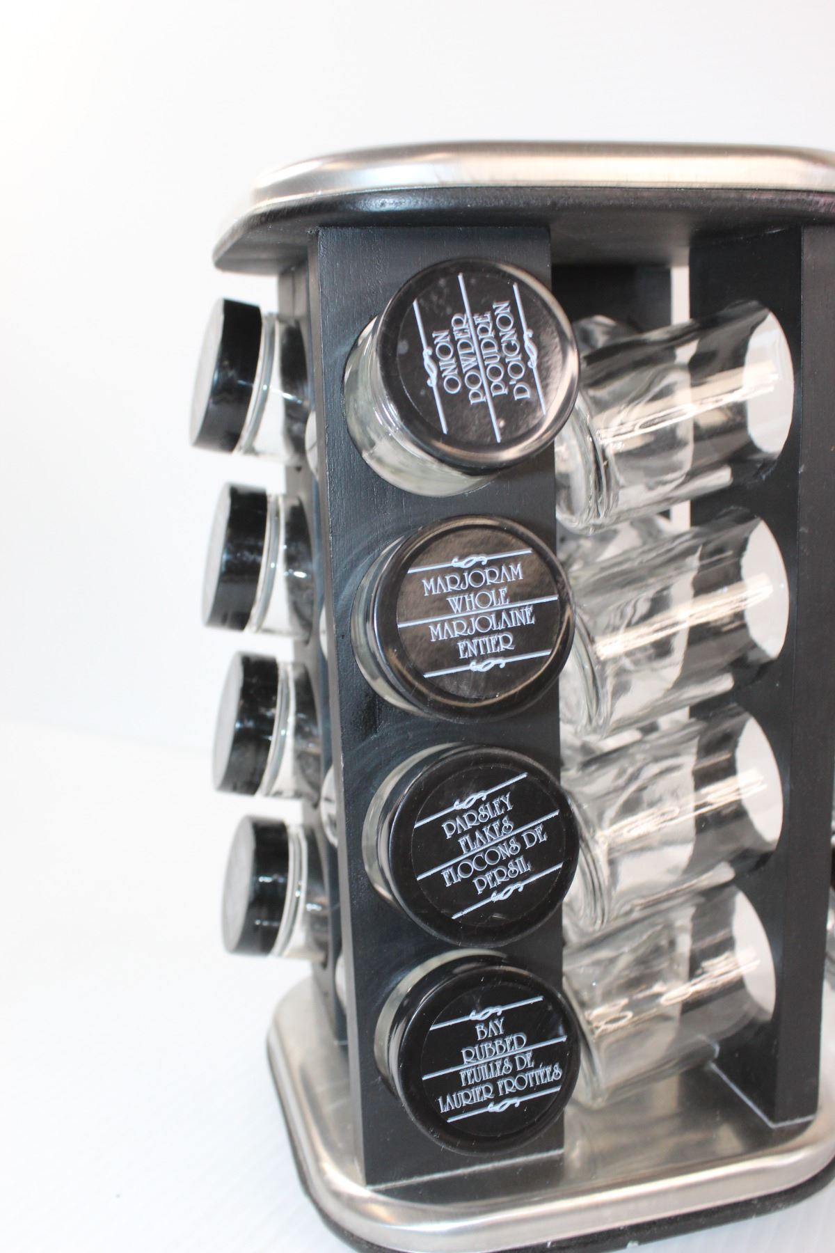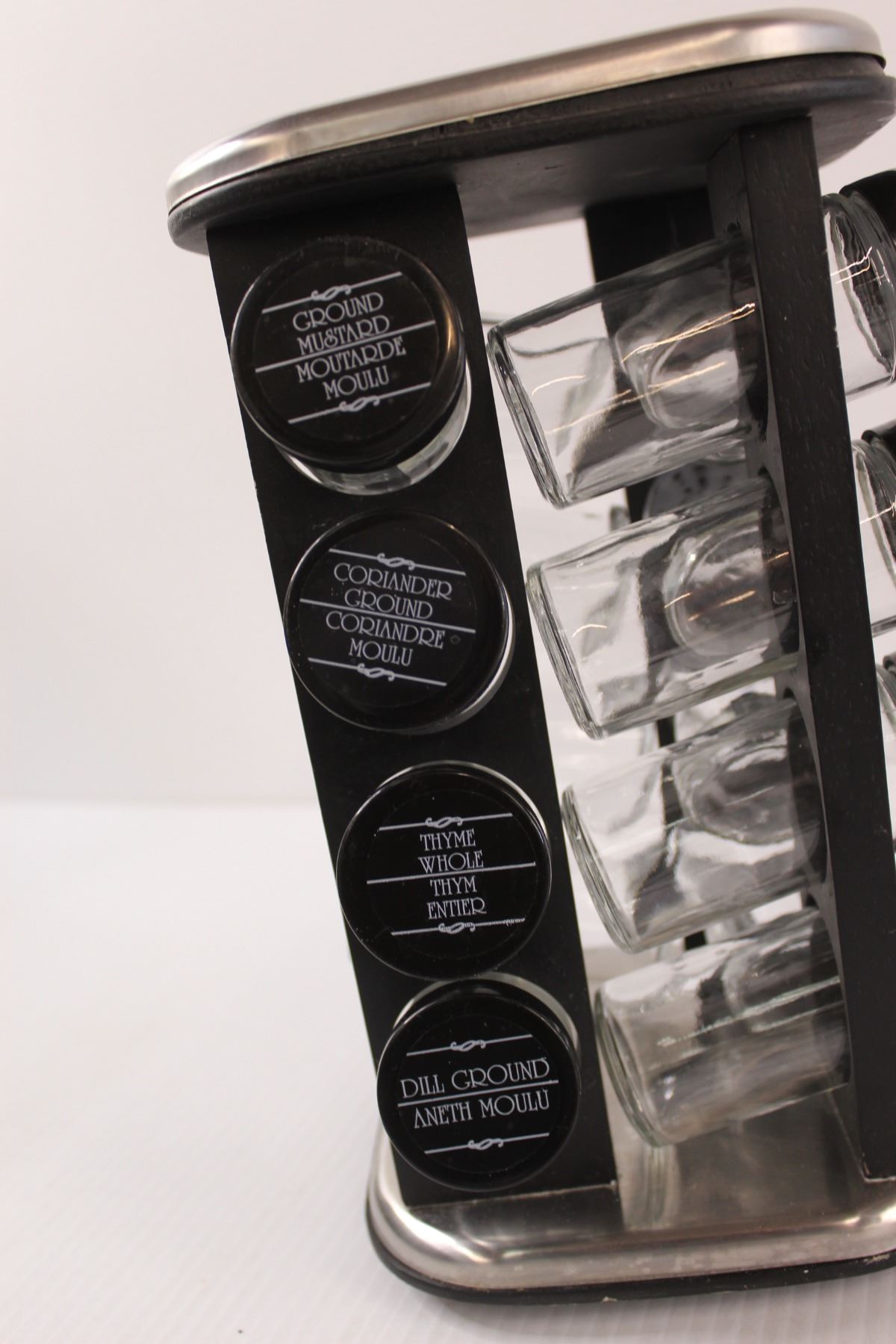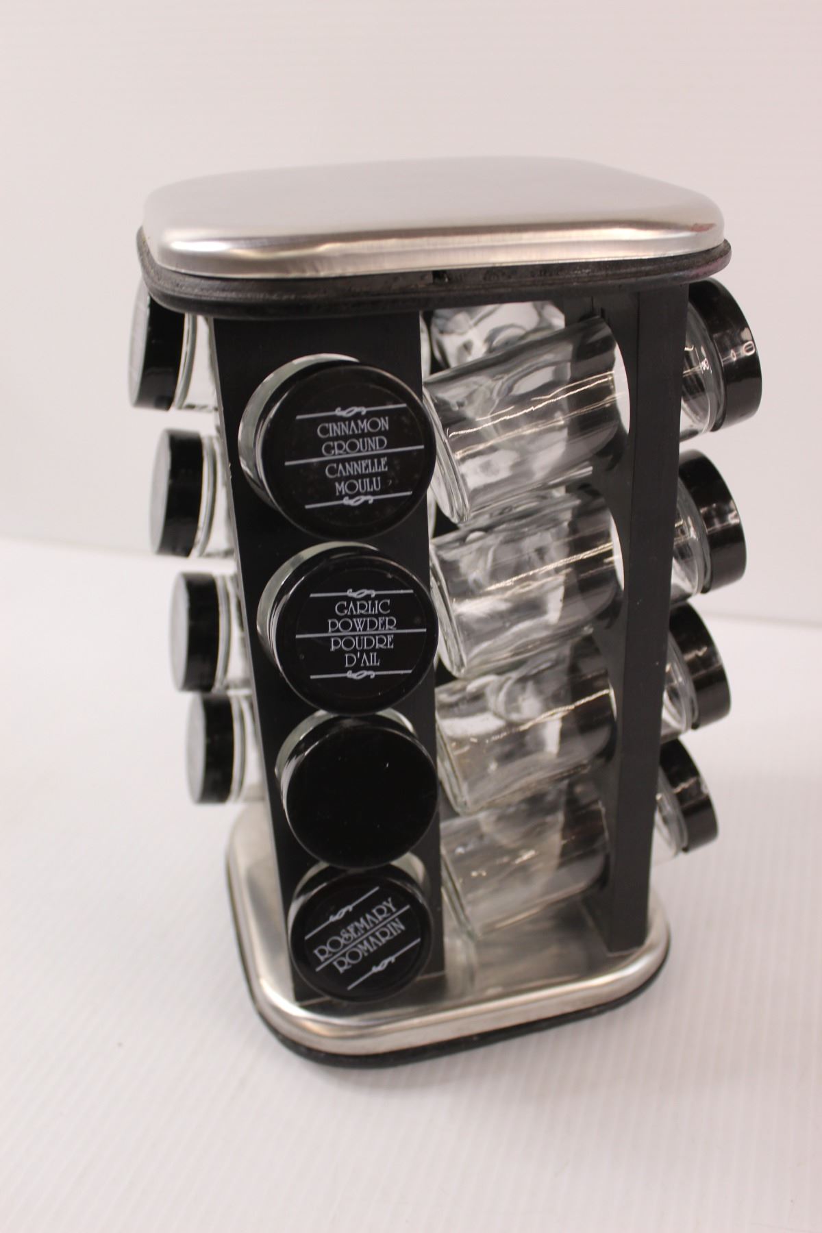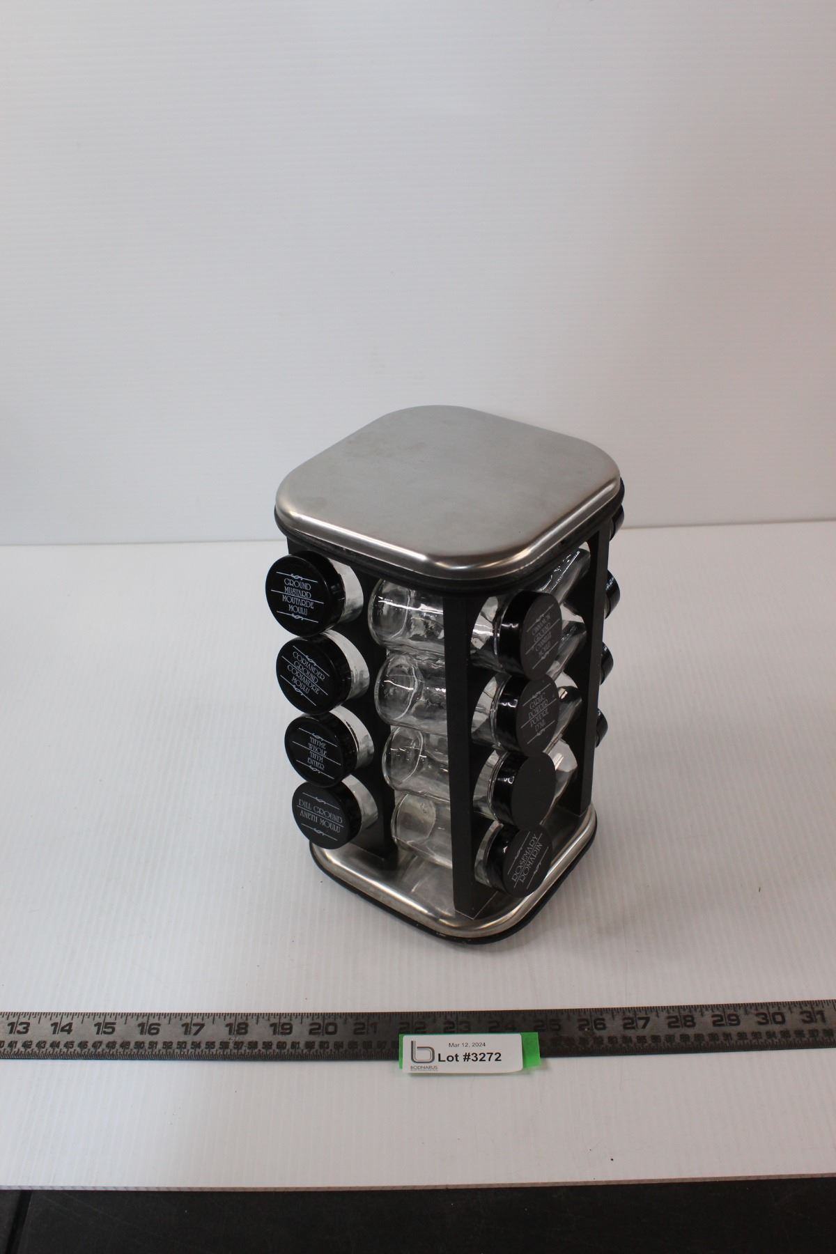 Stainless Spice Rack w/ Glass Jars (1 Damaged Lid)