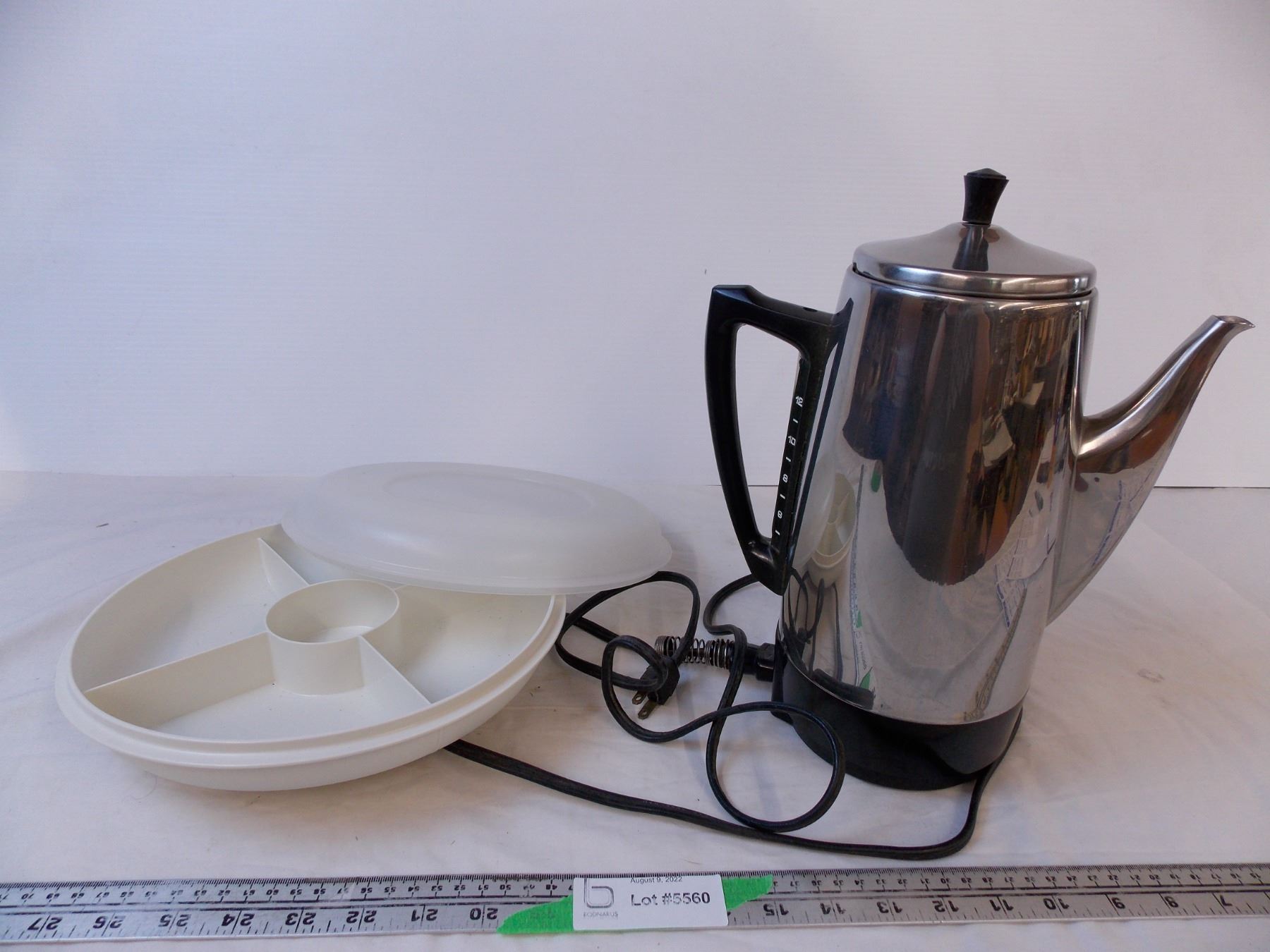 Stainless Steel Electric Coffee Perk + Veggie Dip Tray