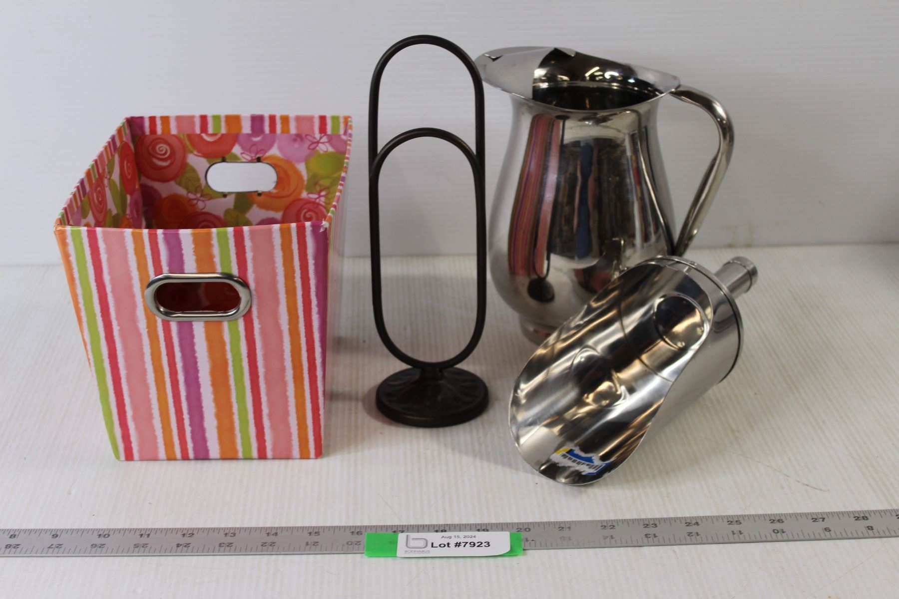 Stainless Steel Pitcher and Ice Scoop, Giant Paper Clip, Colourful Bin Trash