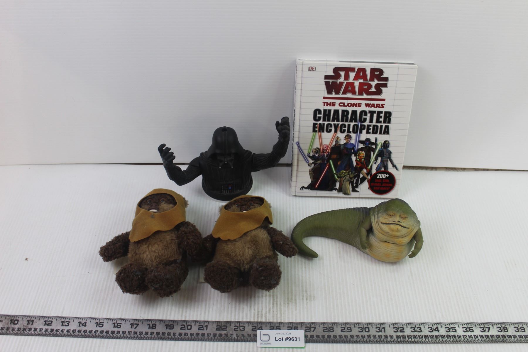Star Wars Vintage Toys - 1988 Hasbro Jabba the Hut + 1997 Plush Toys - Set of 2 Ewoks = Darth Vader Vintage Bottle Topper + Hardcover Book - The Clone Wars - Character Encyclopedia - 2009 Lucasfilm's