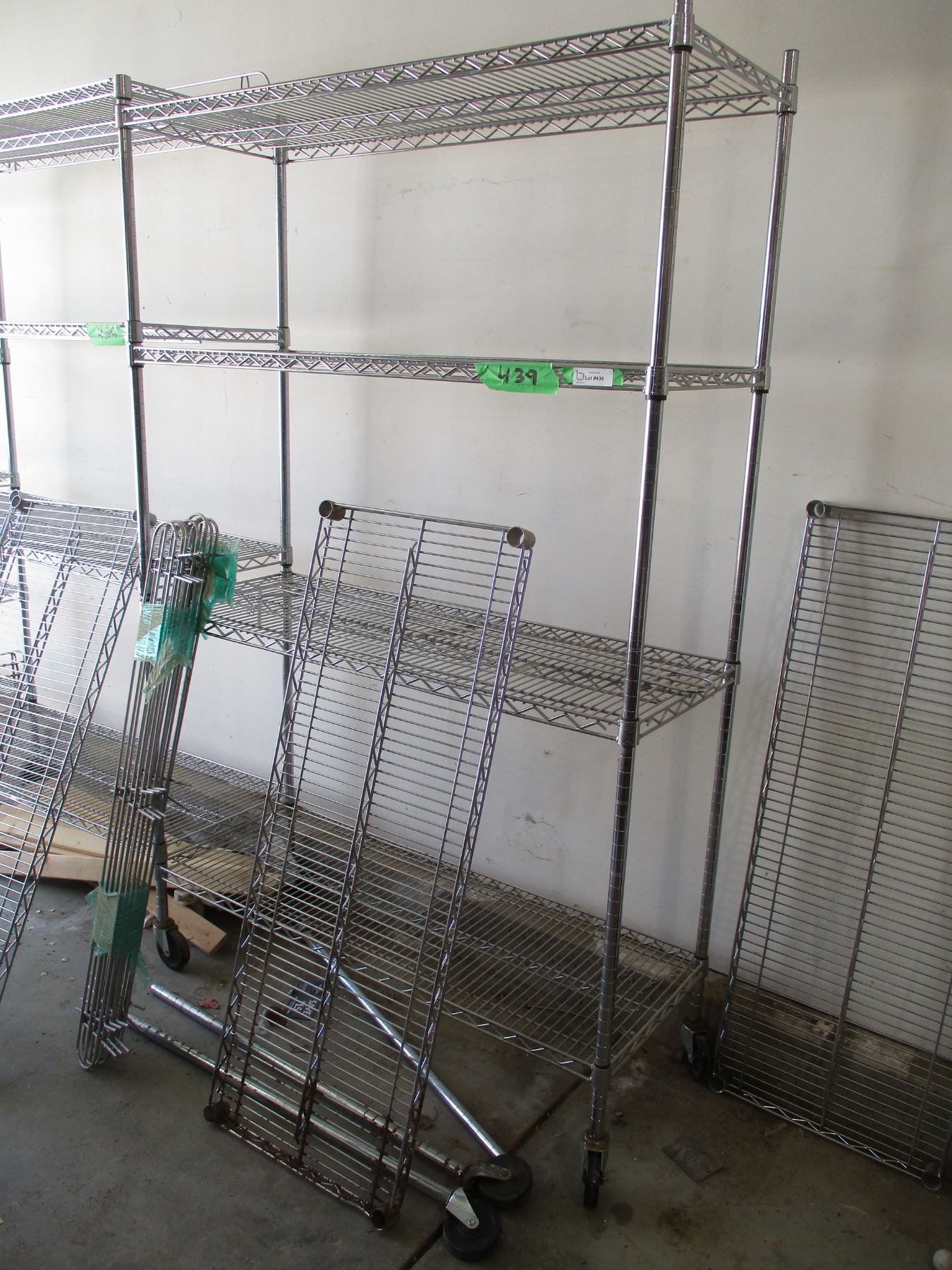 Steel Wire Shelving Unit/Rack w/Extra Parts ( May Need To Be Disassembled For Transport) Current Overall Length 11.5', 17" Wide & 77" Tall **Note: Please Contact with Pickup Time