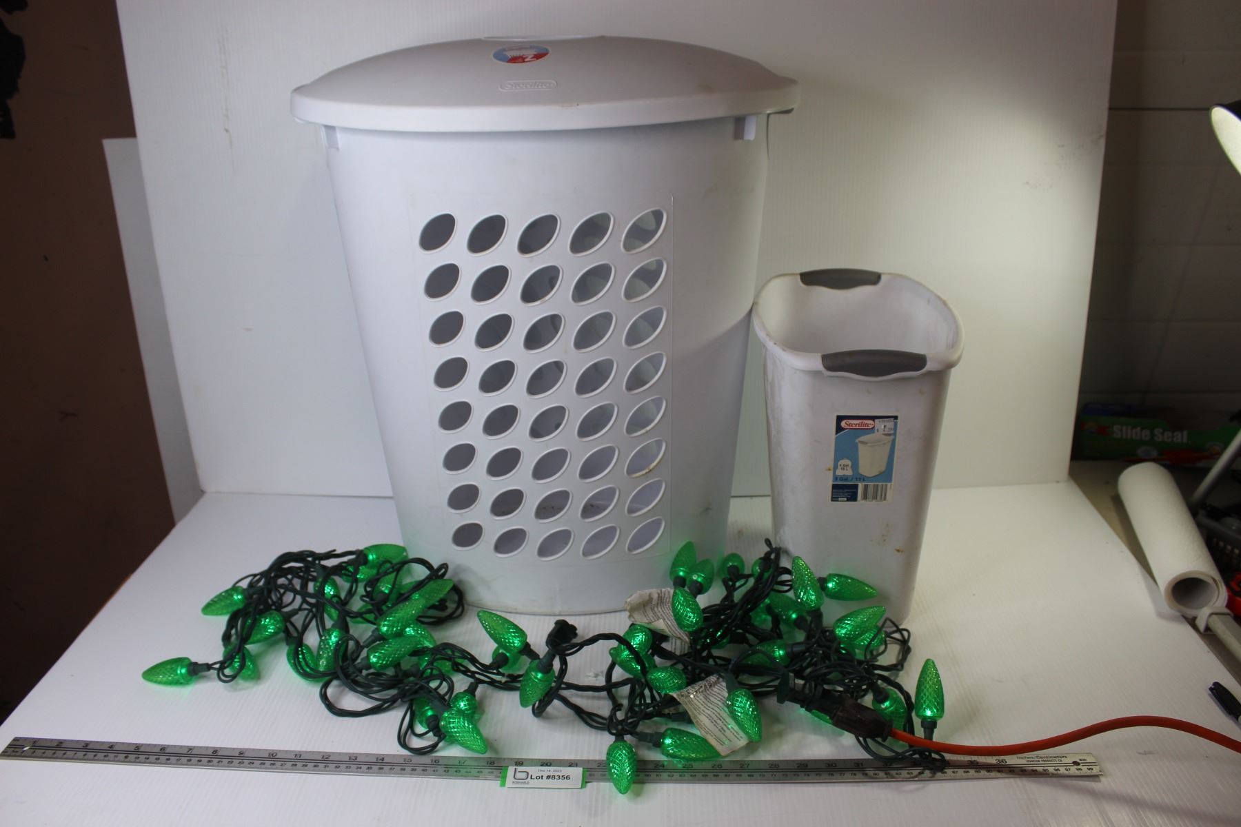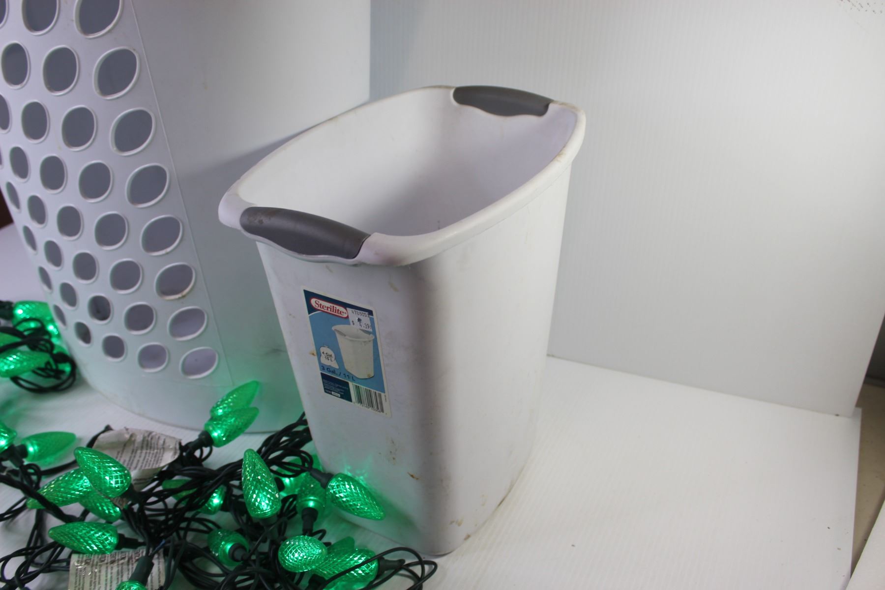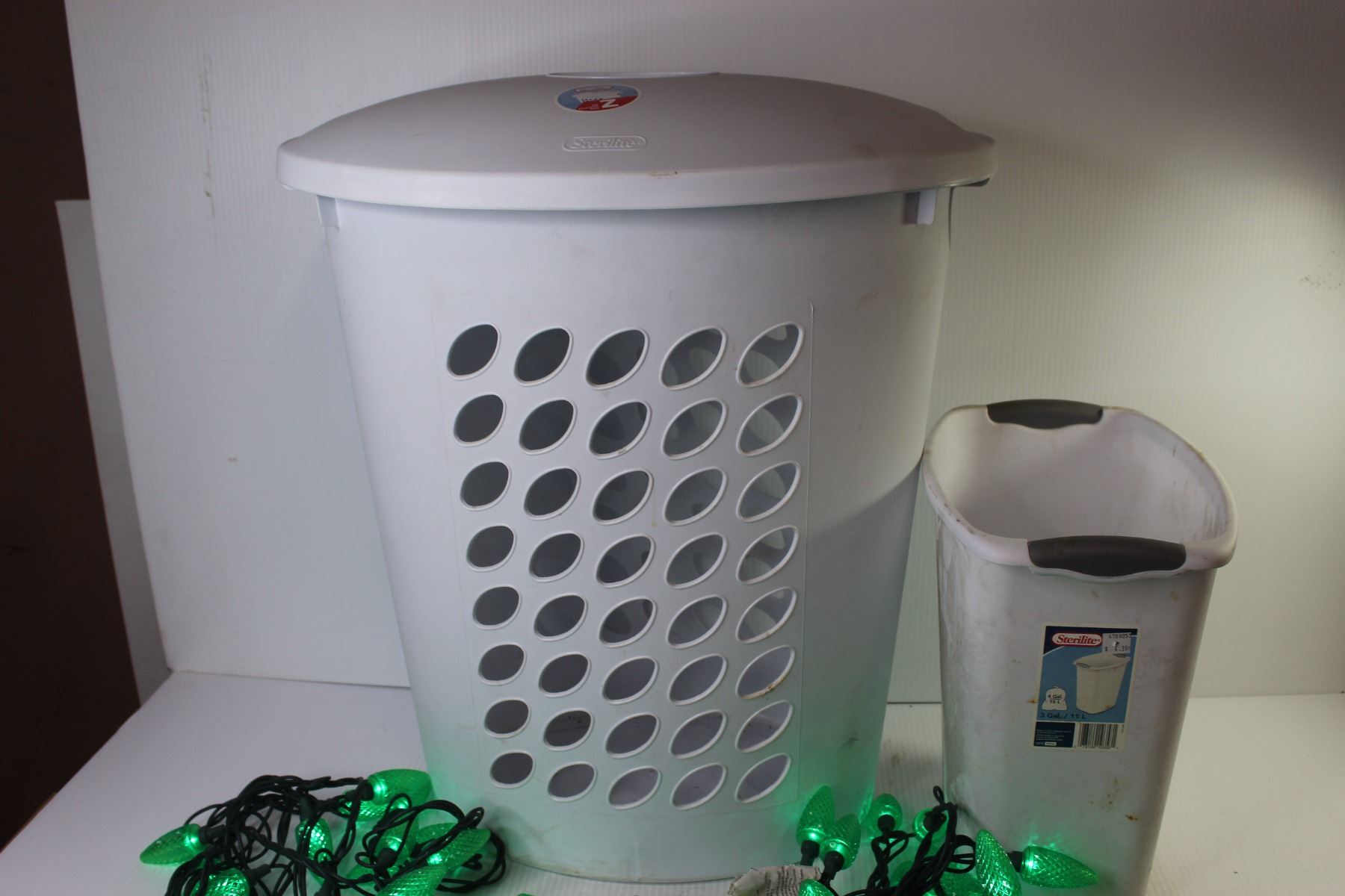 Sterilite Clothes Hamper - Sterilite Waste Basket - Green Christmas Lights