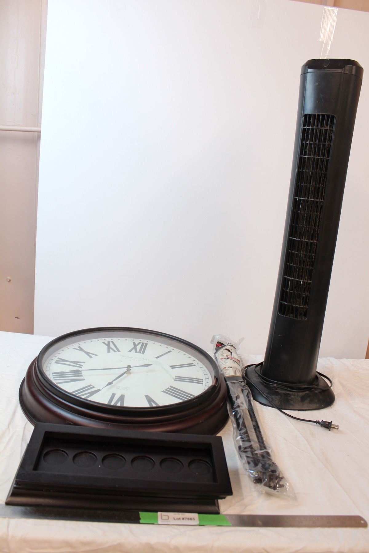 Sterling & Nole wall clock 20” d, partylite candle holder, air humidifier, curtain rod