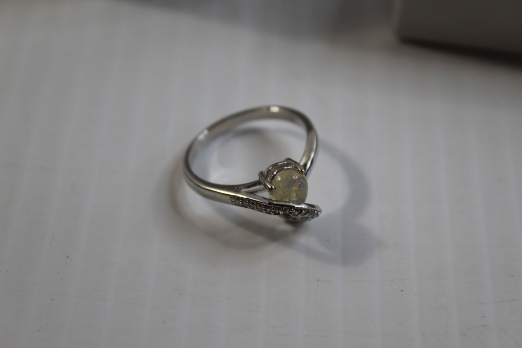 Sterling Silver Opal Cubic Zirconia Ring - Size 9