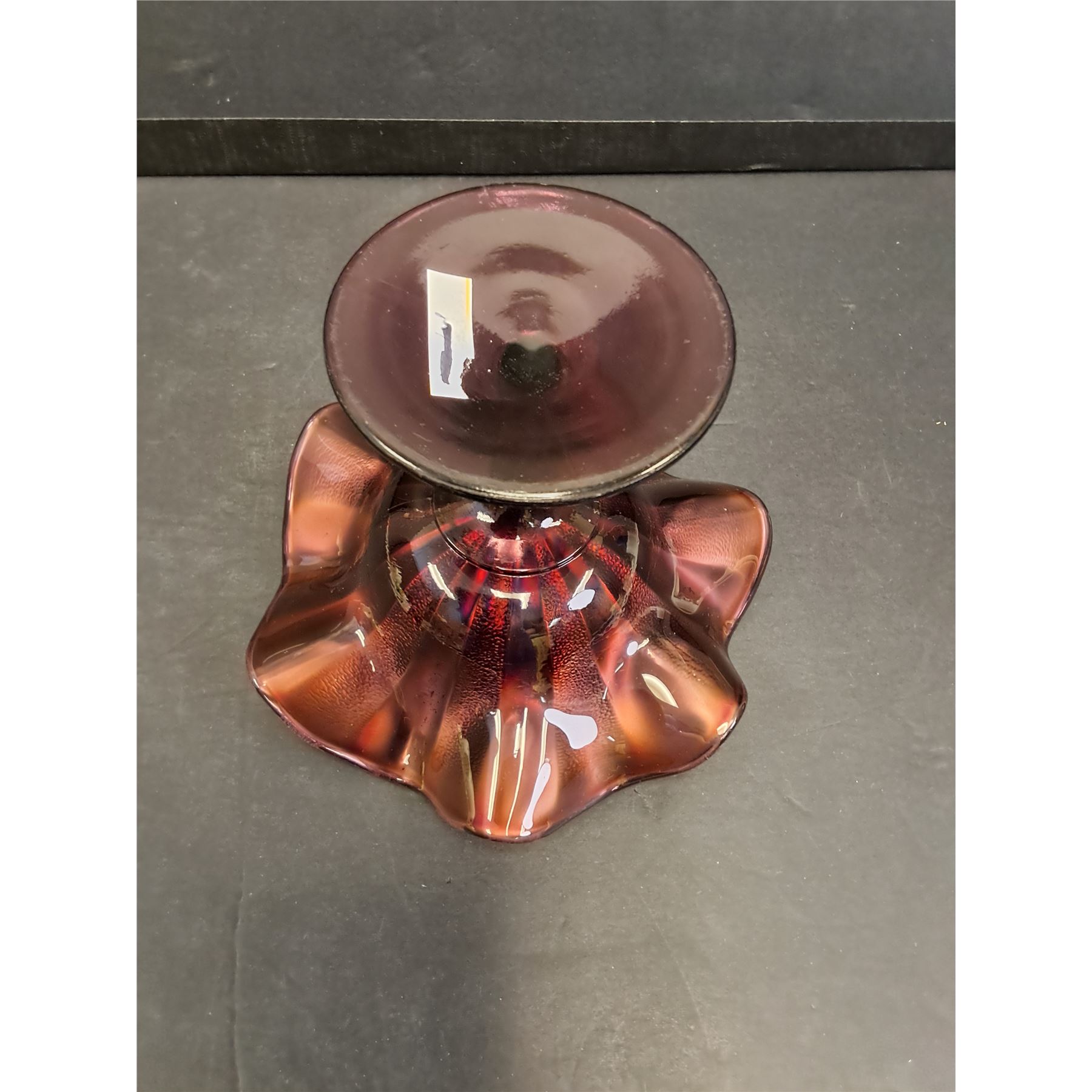 Stippled Ray Footed Glass Tray 4.5  Tall