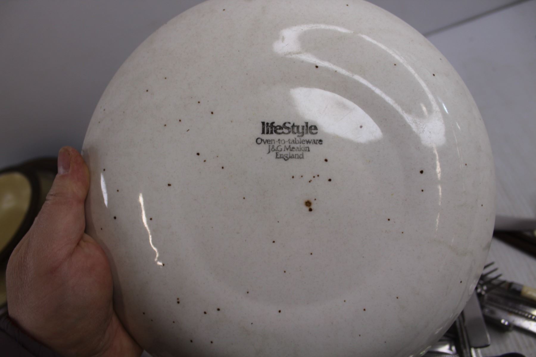 Stoneware Dishes - 1 Chipped, Assorted Vintage Table Cutlery