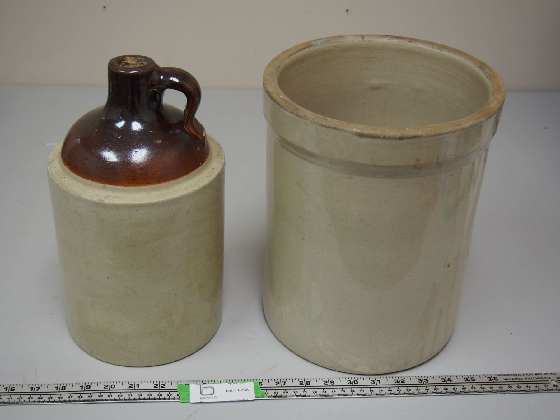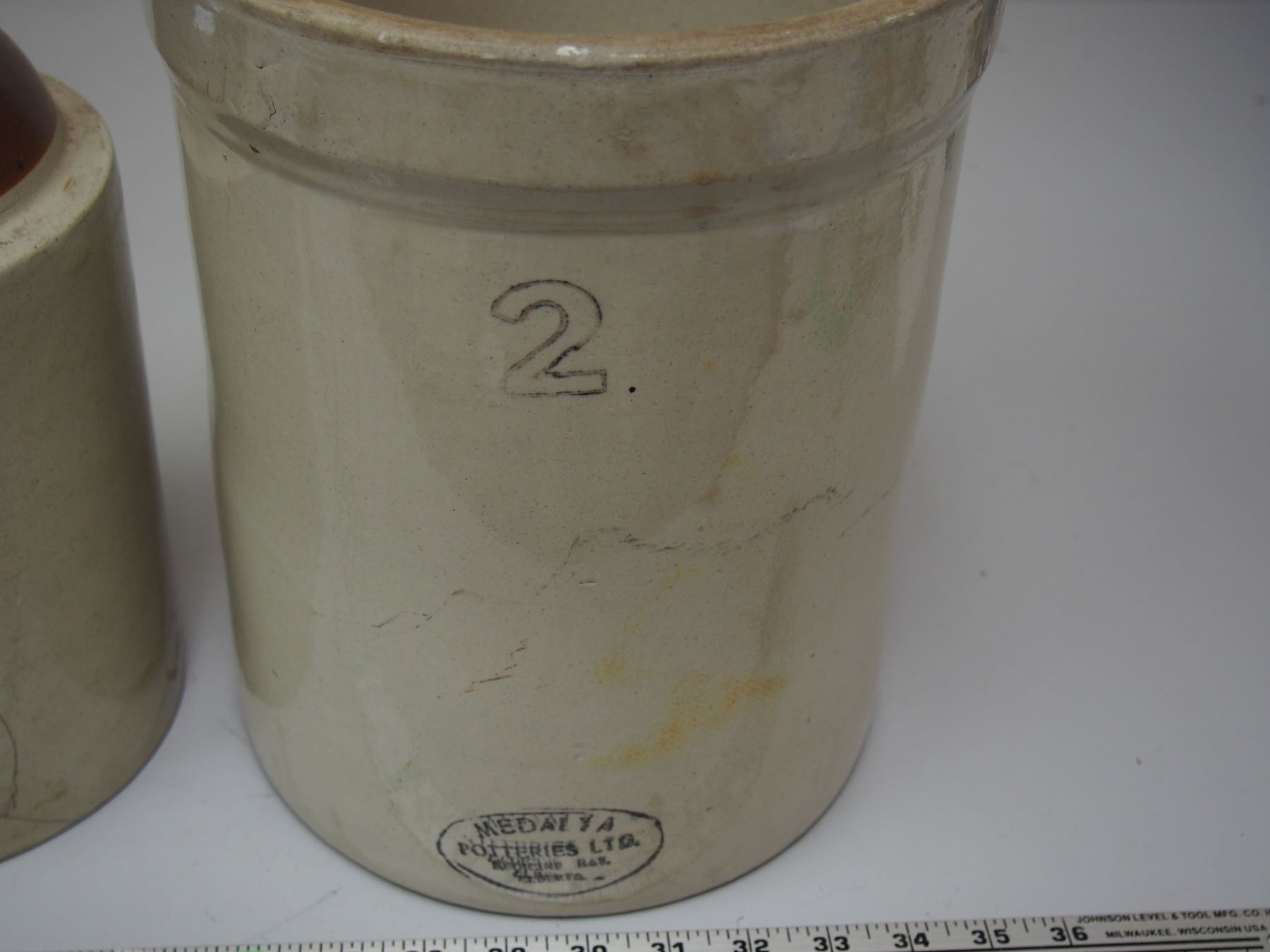 Stoneware Tus (Cracked) and 2 Gallon Medalta Crock