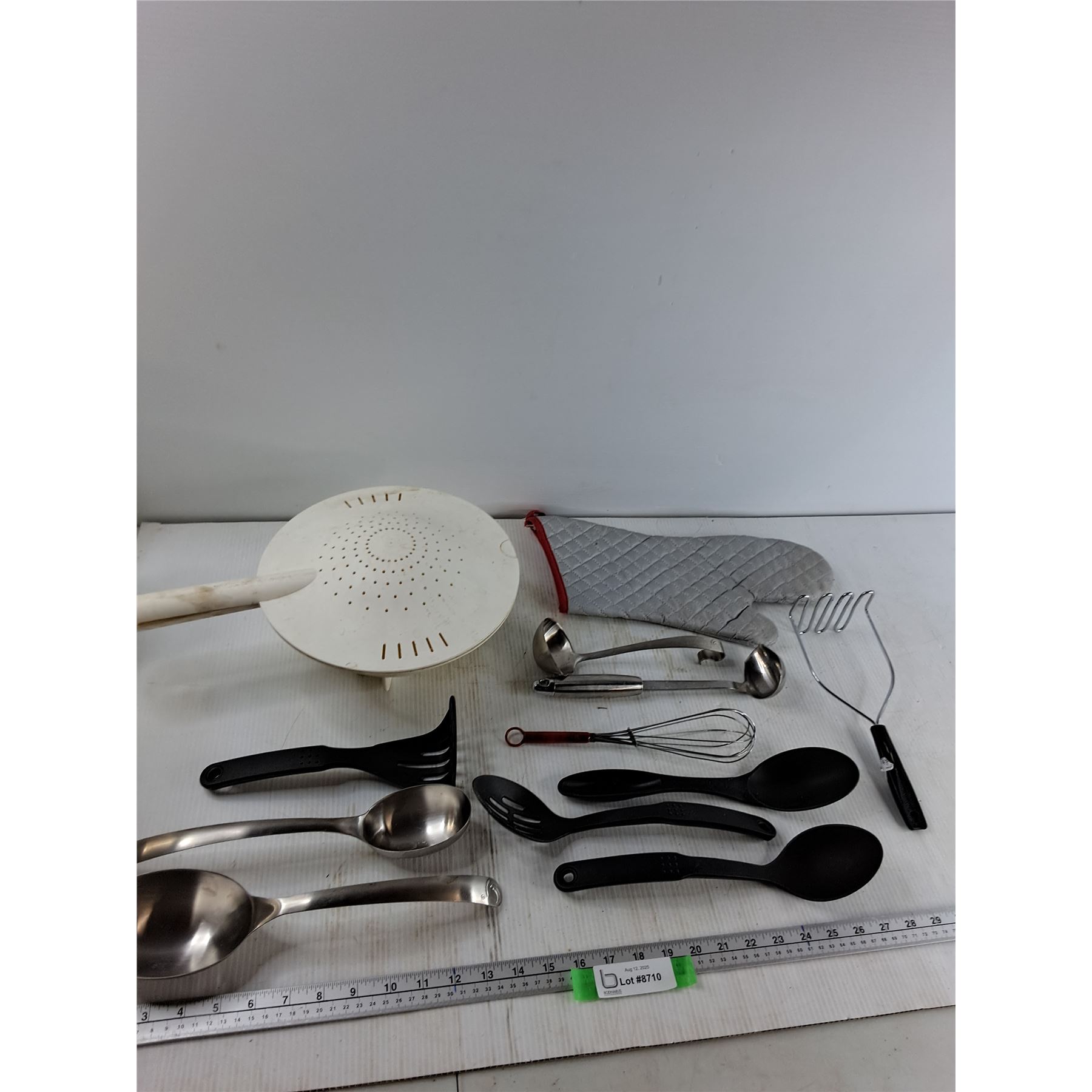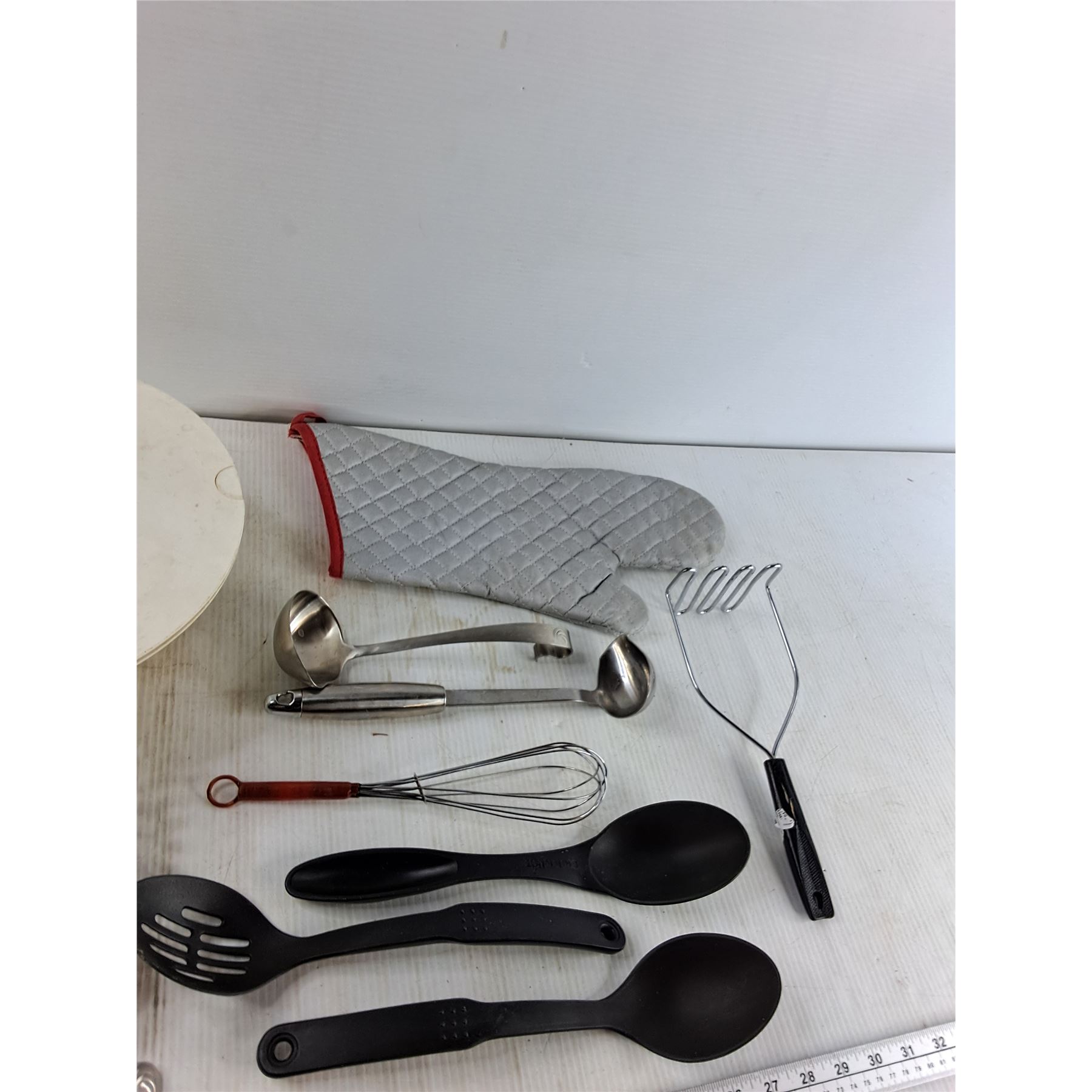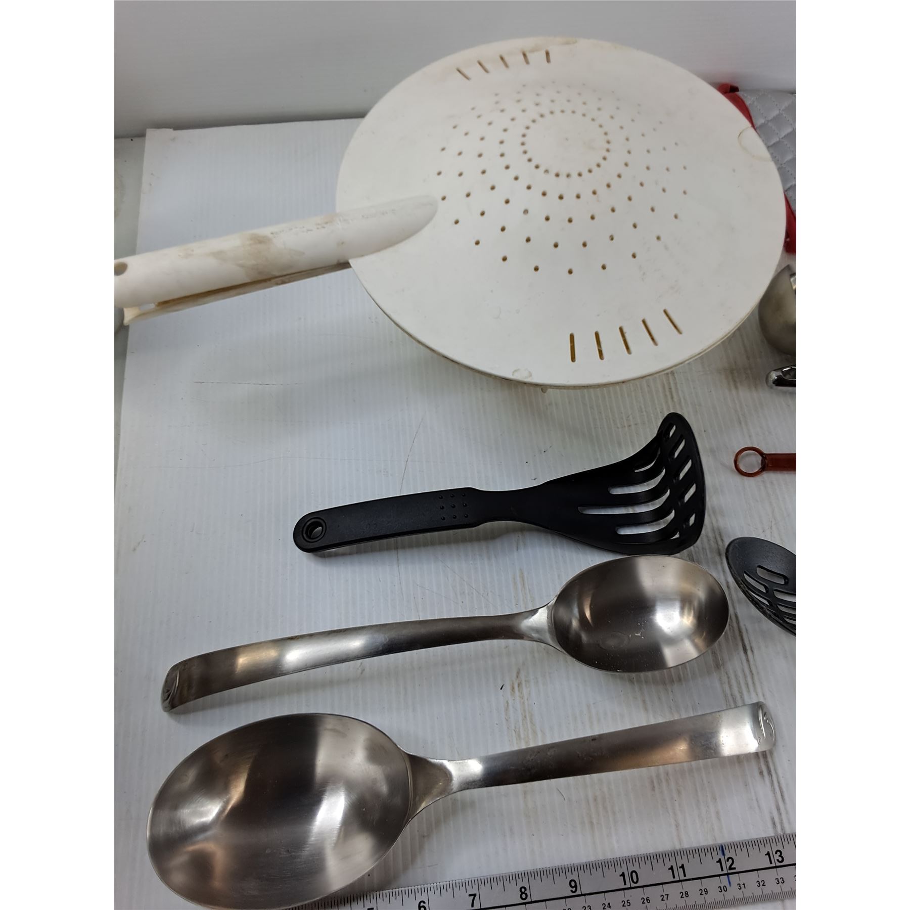 Strainer, Potato Masher, (5) Spoons, Misc