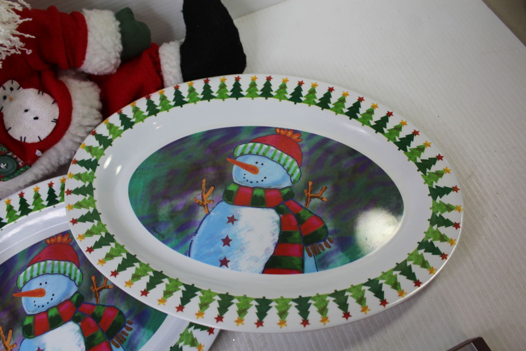 Stuffed Santa - Plastic Platters - Door Hangers - Table Runner