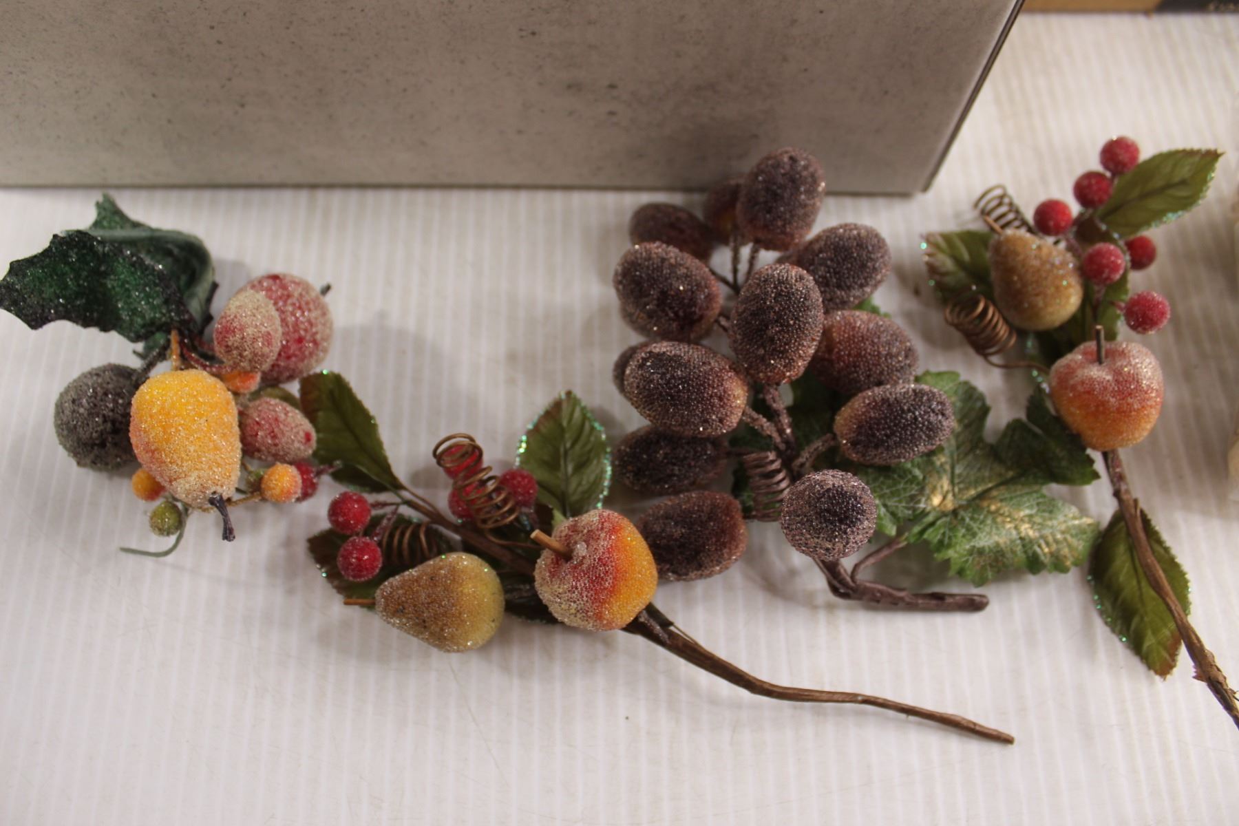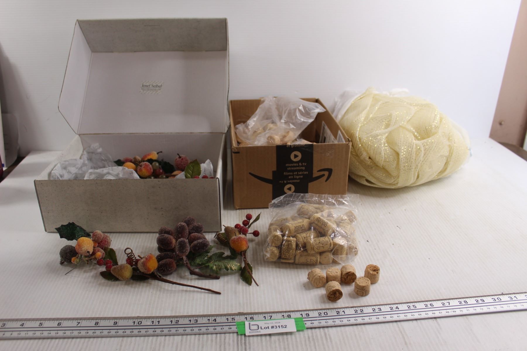 Sugar Fruit Ornaments, Various Corks, Ribbon