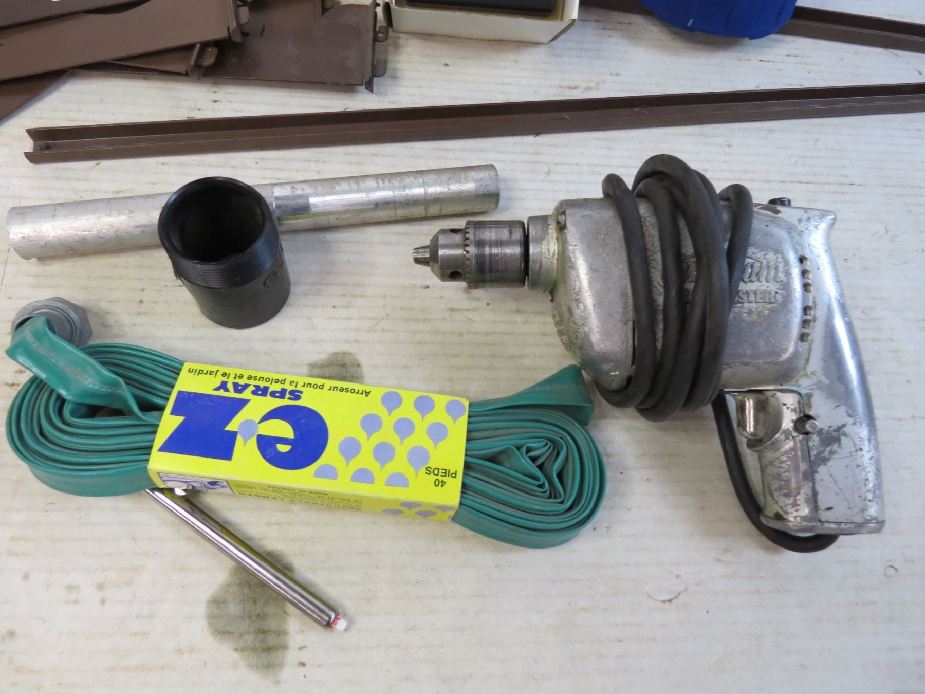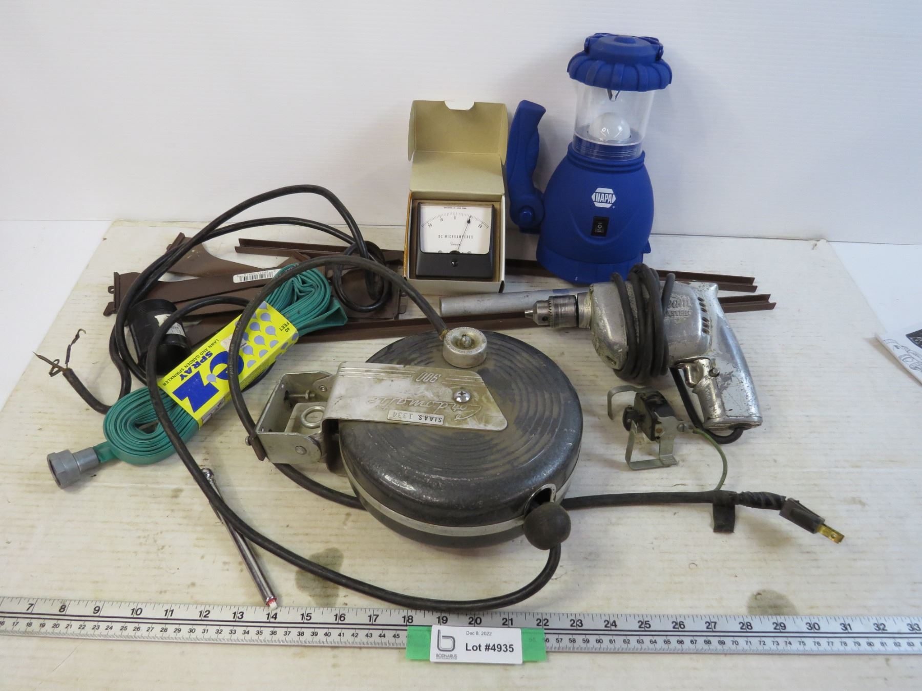 SunBeam Drill (works) - Simpson Power Meter - Napa Light (new) - Shelf Supports - Cord-O-Matic Extension Cord Reel - Sprinkler Hose