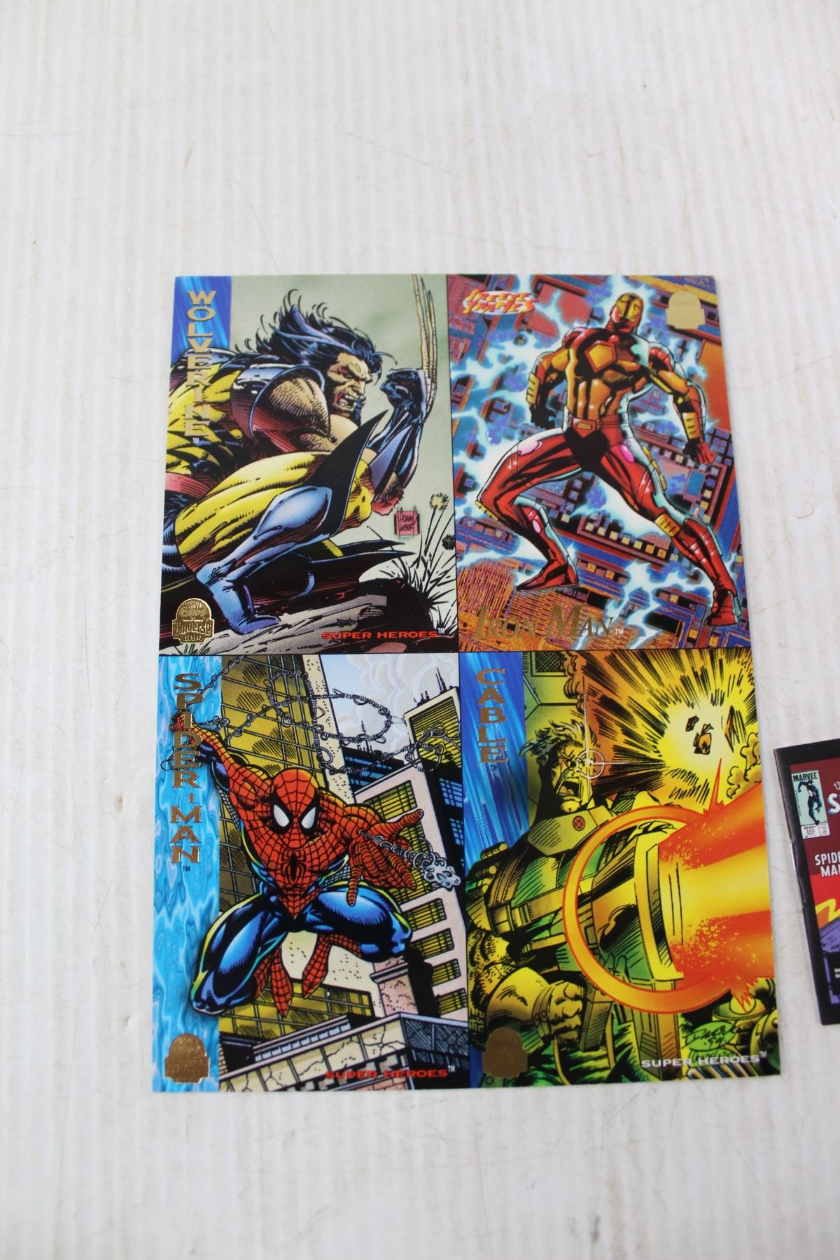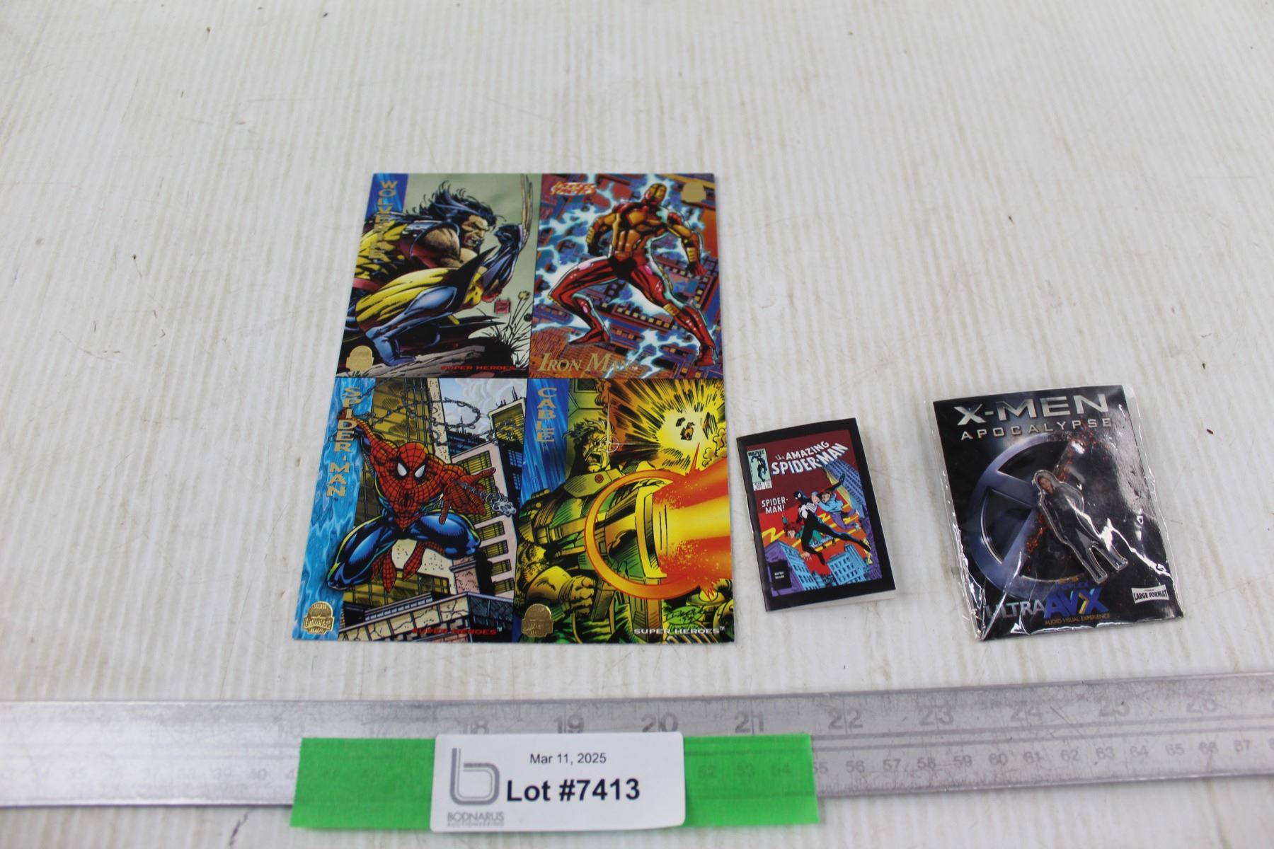 Super Heros Lot, (4) 1994 Uncut Marvel Cards, Mini Spiderman Comic, Misc