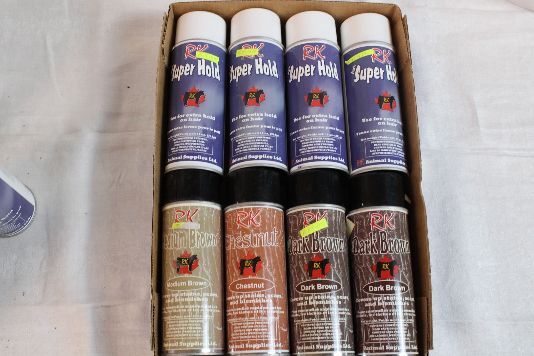 Super Hold Livestock Spray (4 cans) + Dark Brown, Chestnut, Medium Brown (4)
