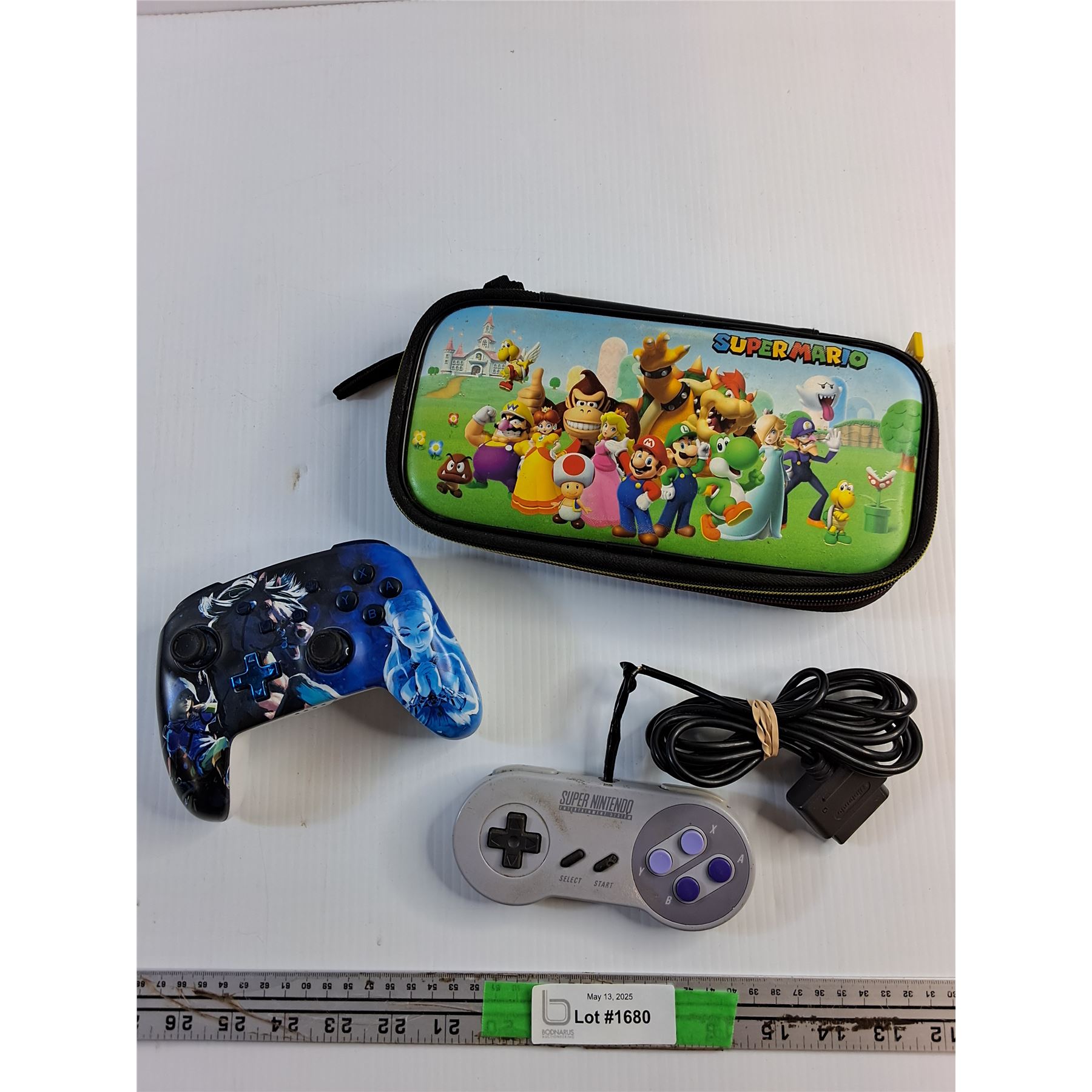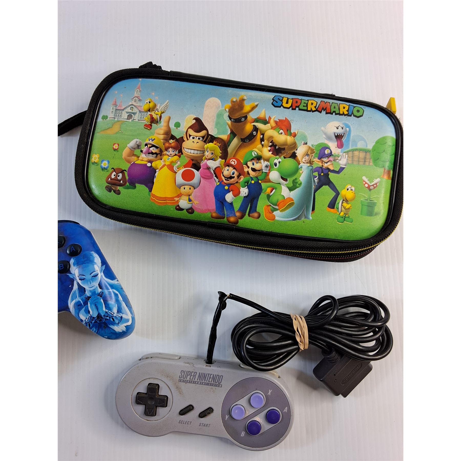 Super Mario Console Case, Super Nintendo and Gaming Controllers - As Is