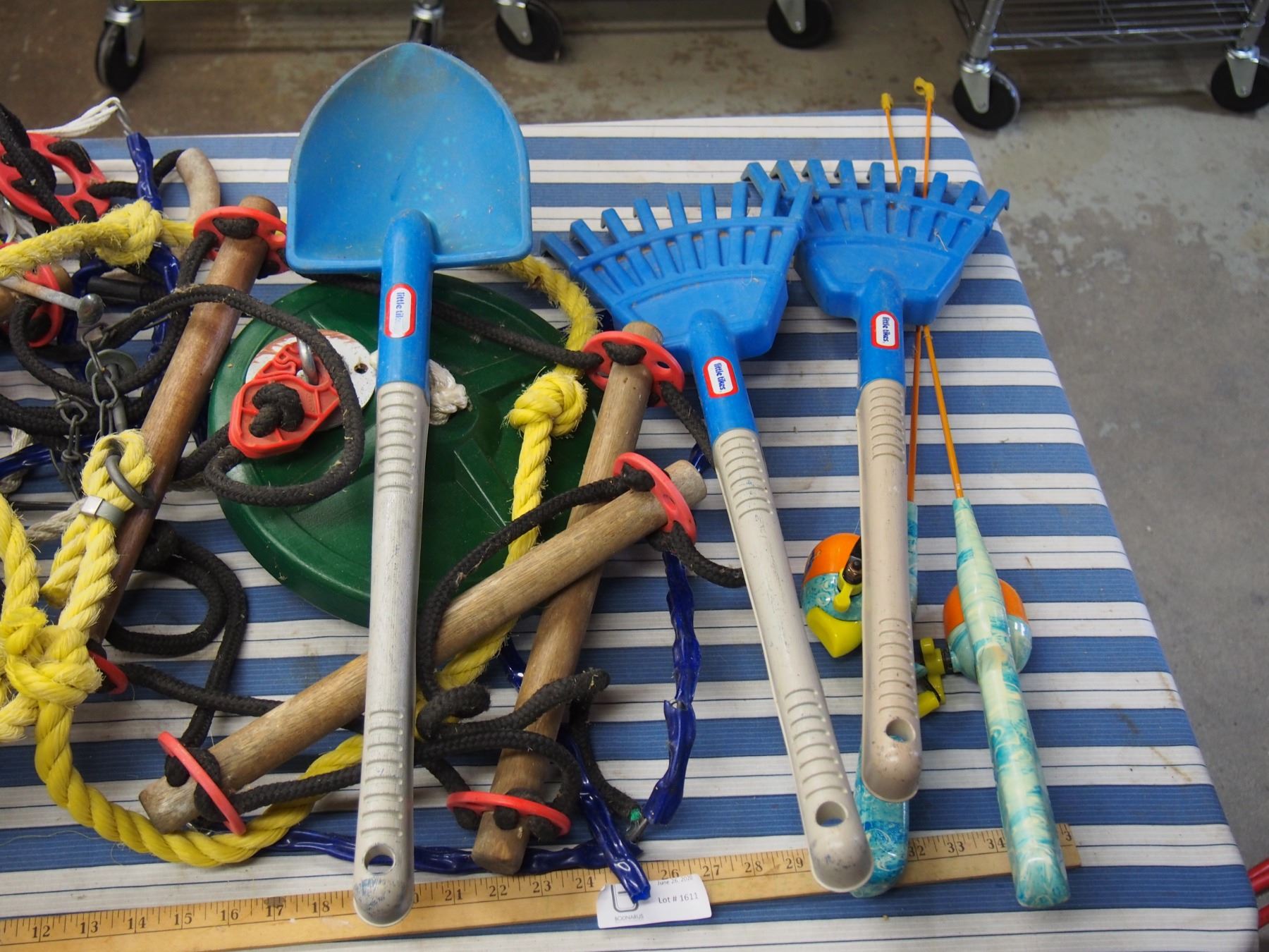 Swing, Youth Fishing Rods, Little Tikes Plastic Shovel and Rakes, plus More
