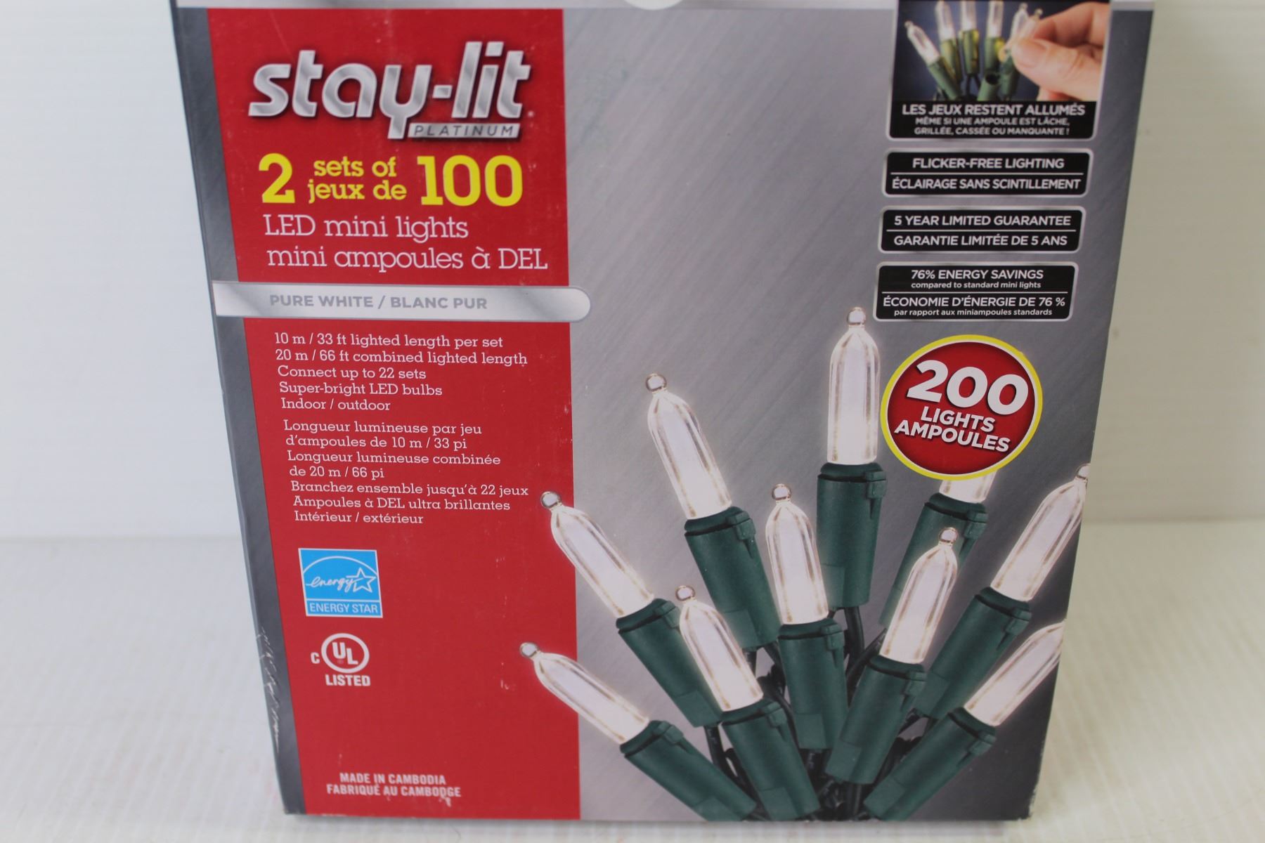 Sylvania Stay-Lit (2) Sets of 100 White Lights (NIB)