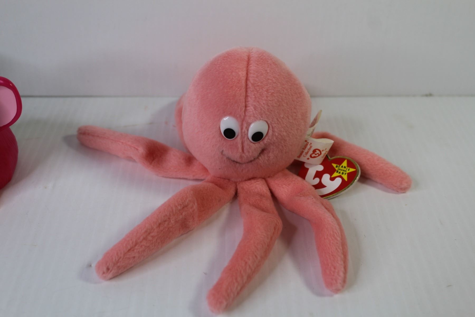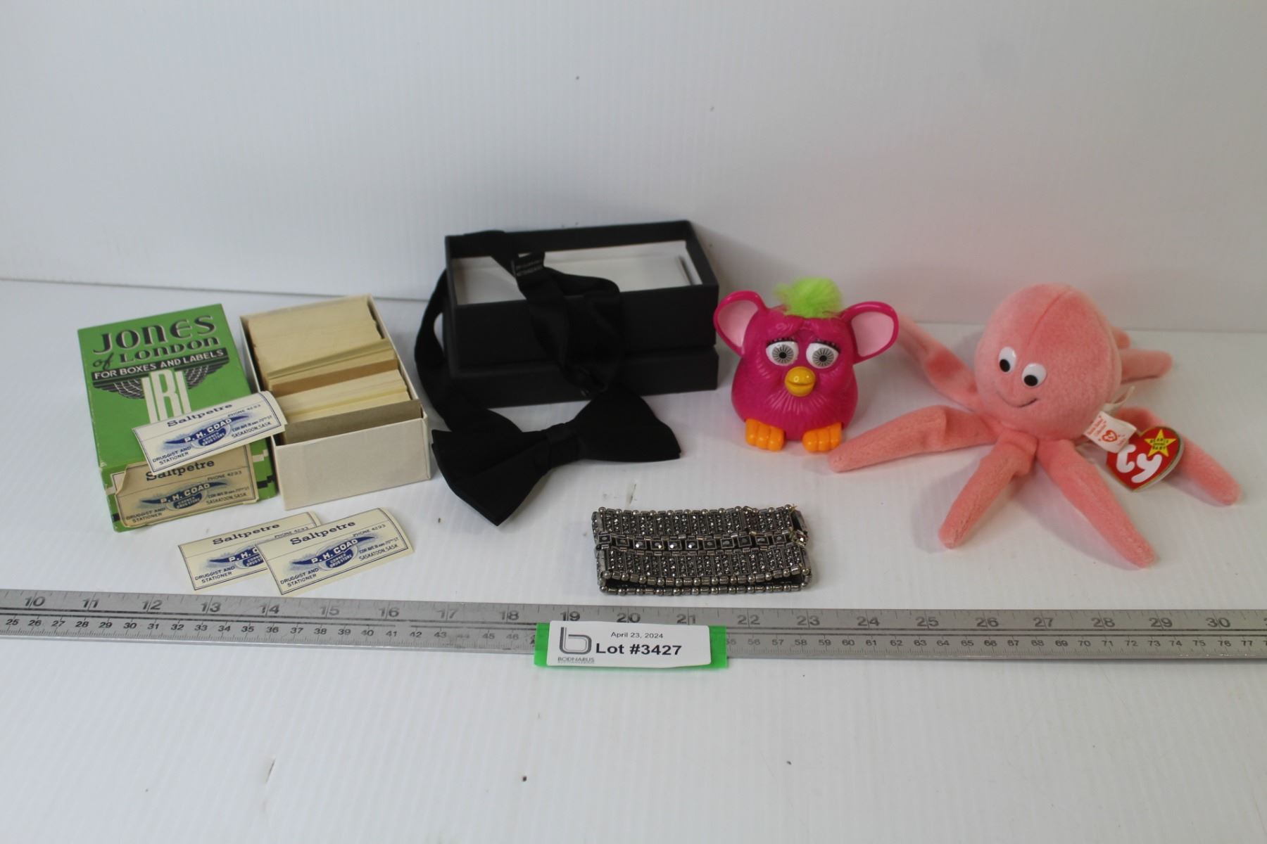 TY Pink Octopus - Black Bow Tie - Plastic Furby Toy - Metal Elastic - Vintage Jones of London Labels