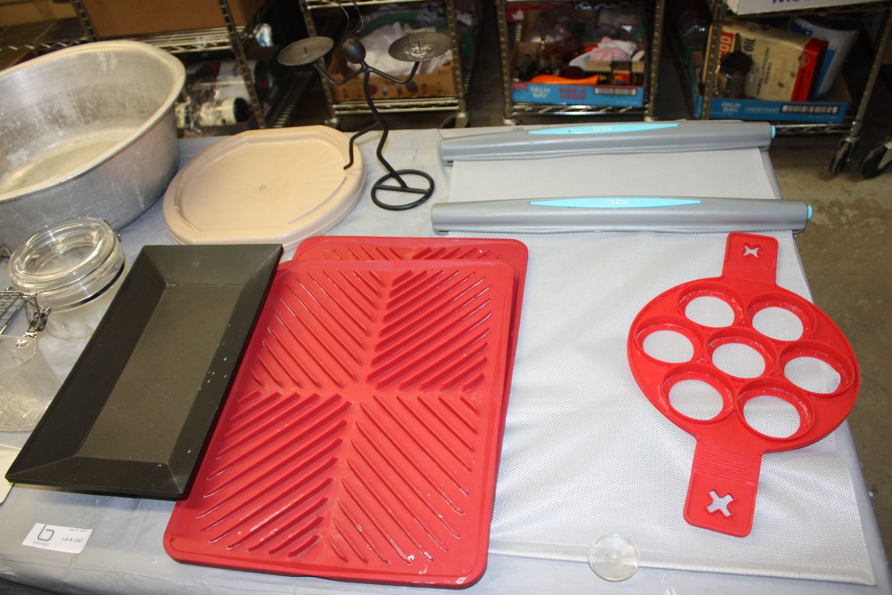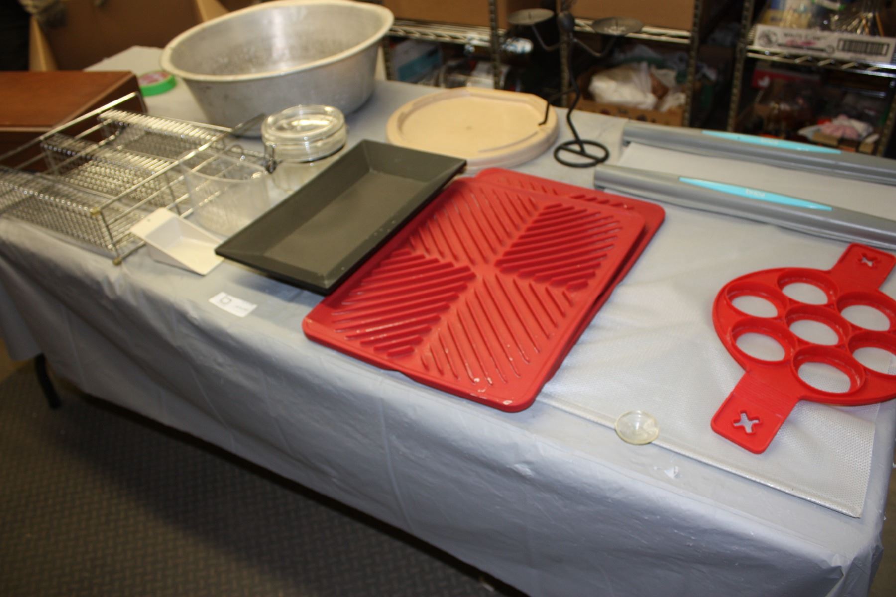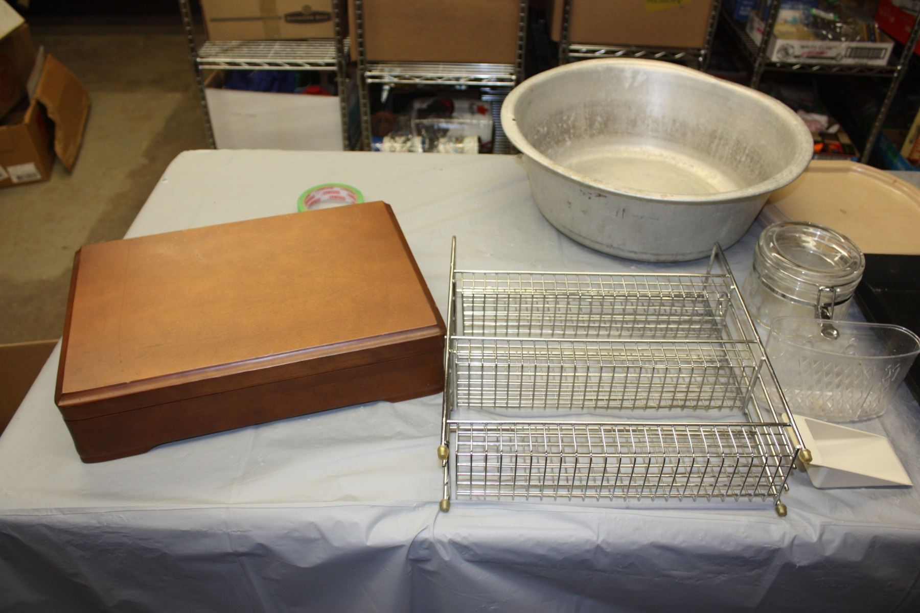 Table Lot of Metal Stand, Car Window Blinds, Storage Box and Misc