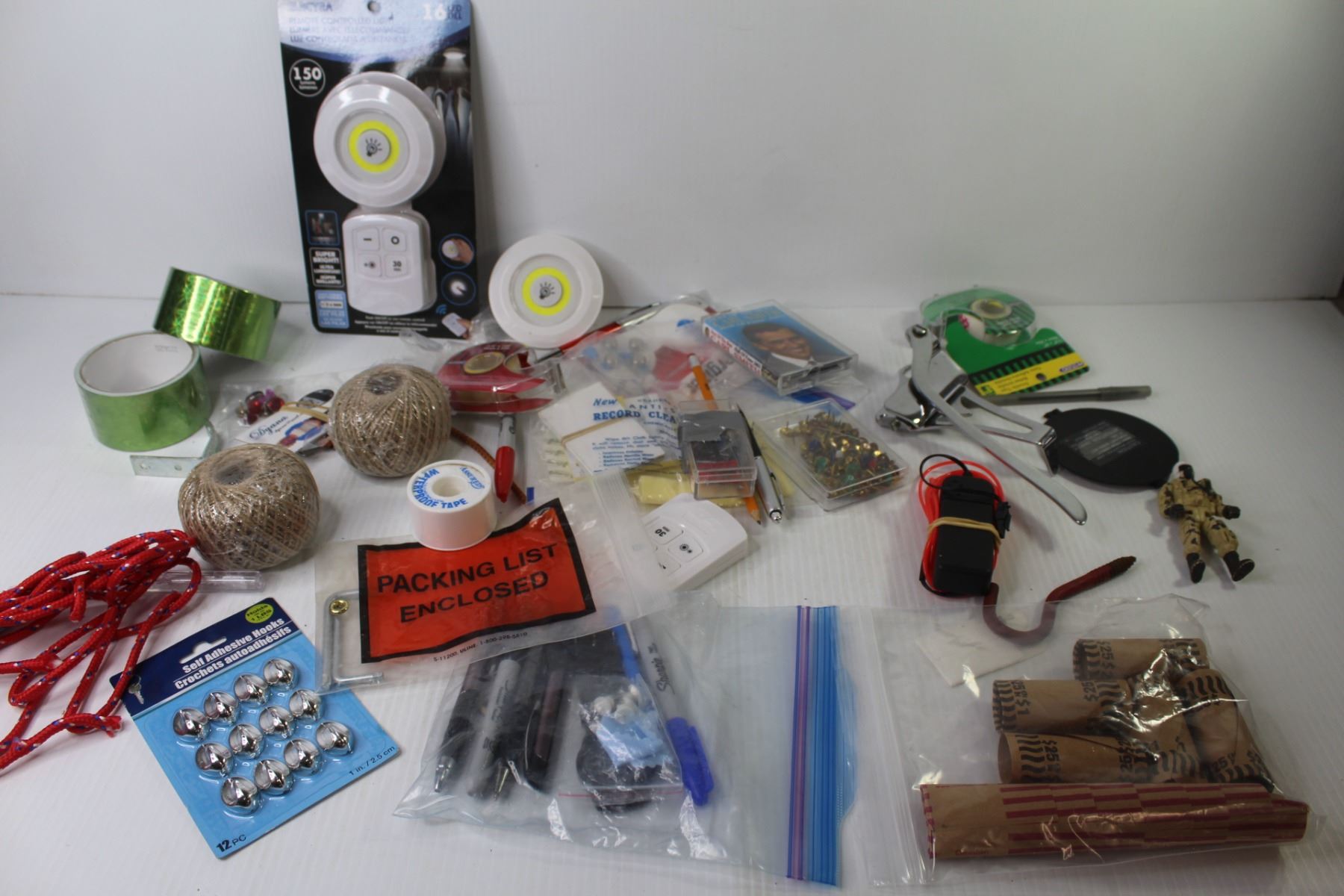 Tapes - (2) Balls of String - Thumb Tacks - Hooks - LED Lights - Misc. Items