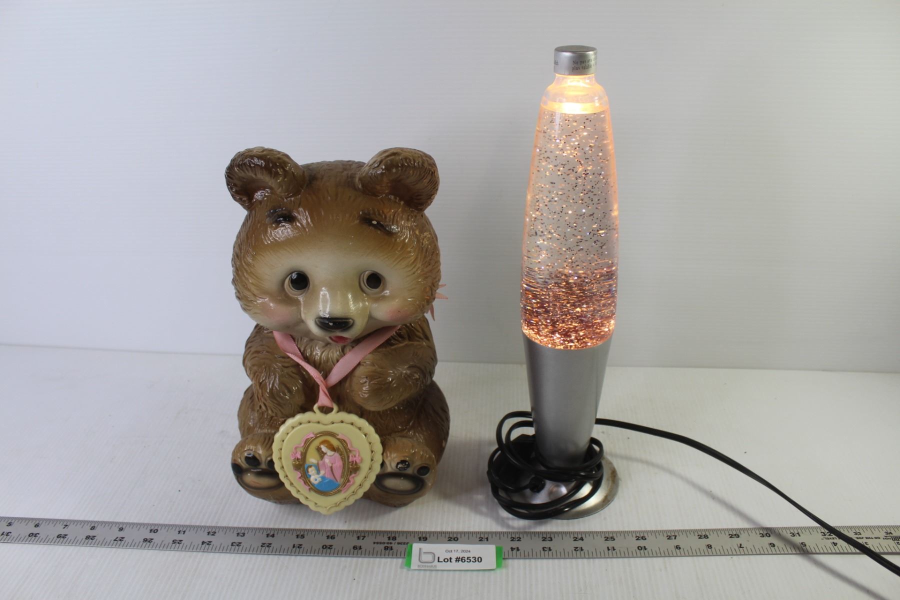 Teddy Bear Coin Bank - Sparkle Lava Lamp (missing top cap)