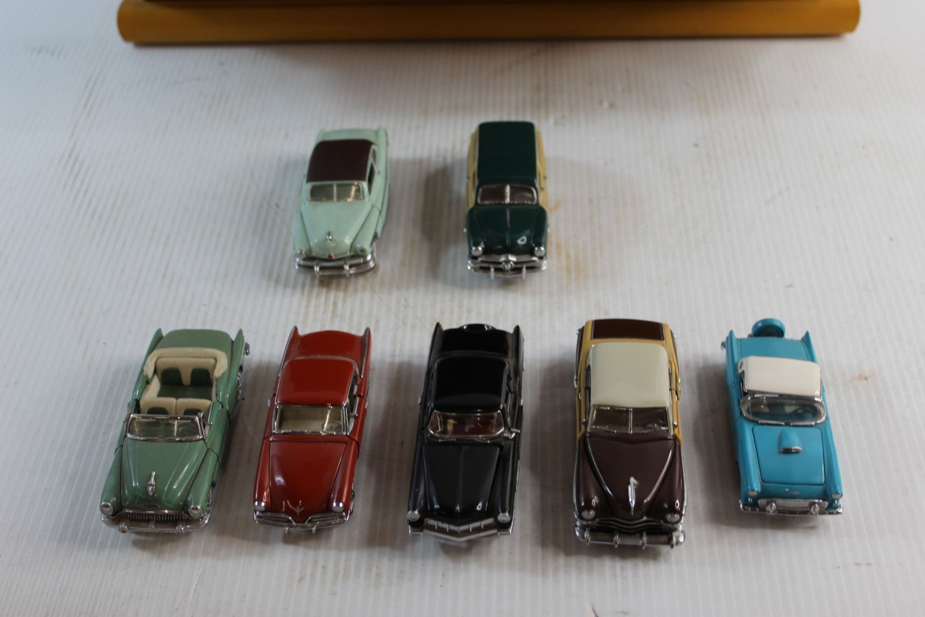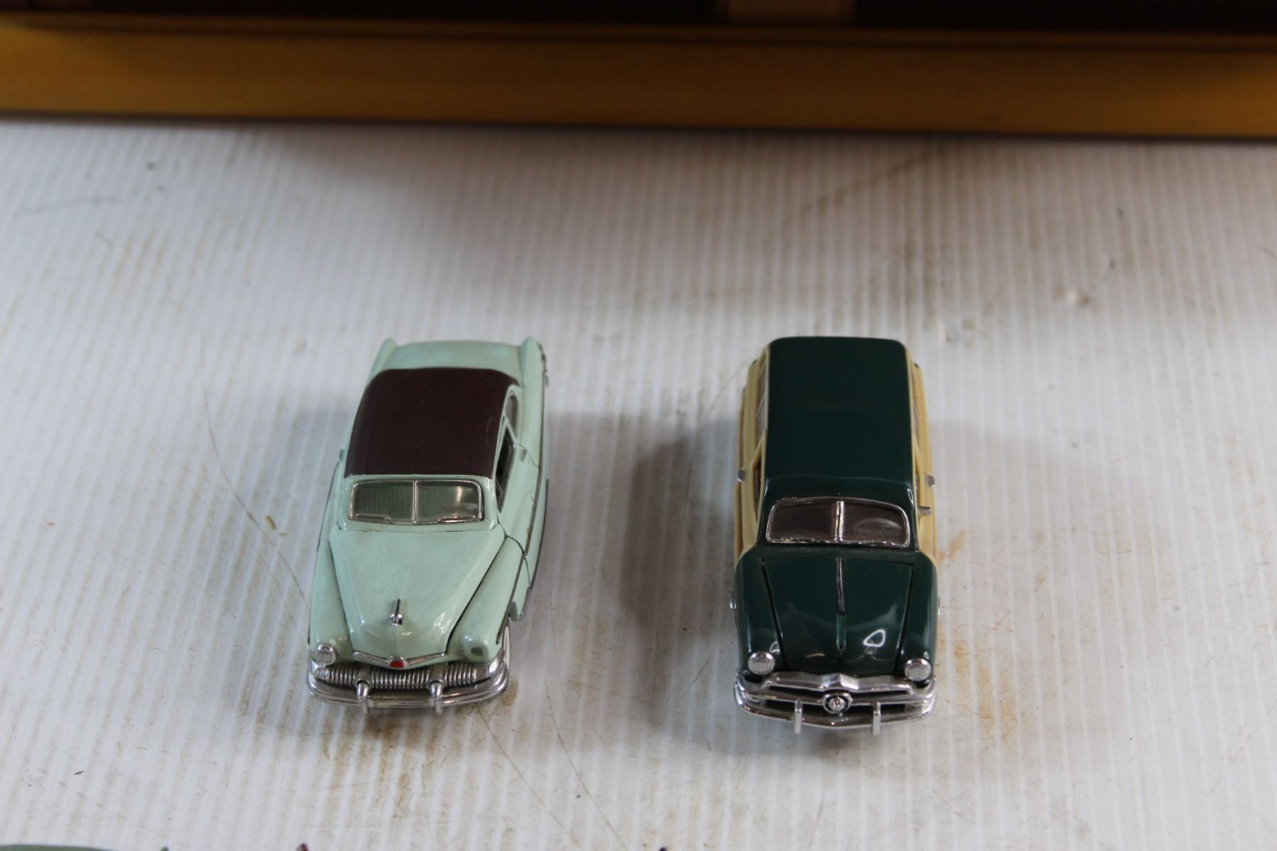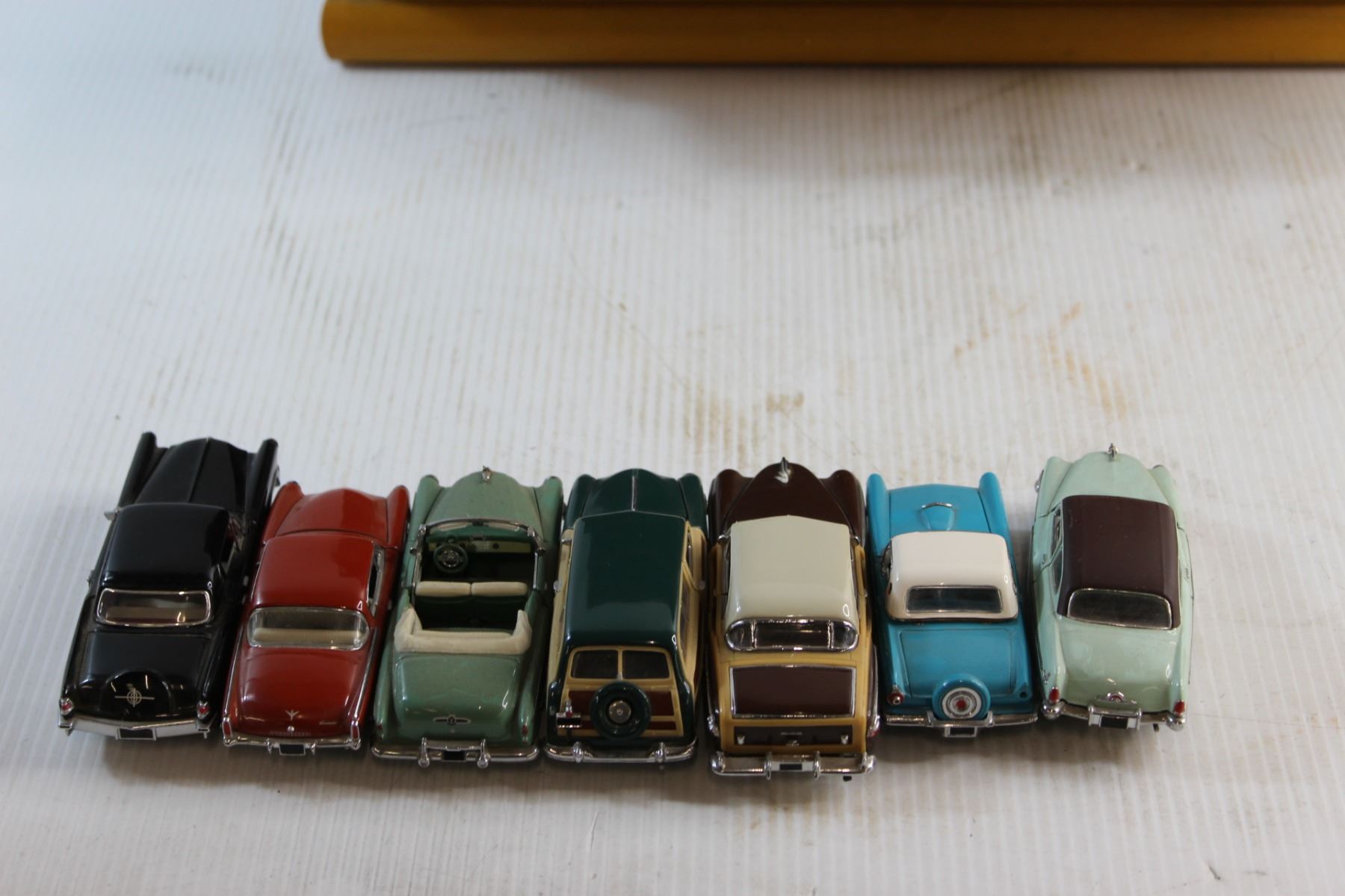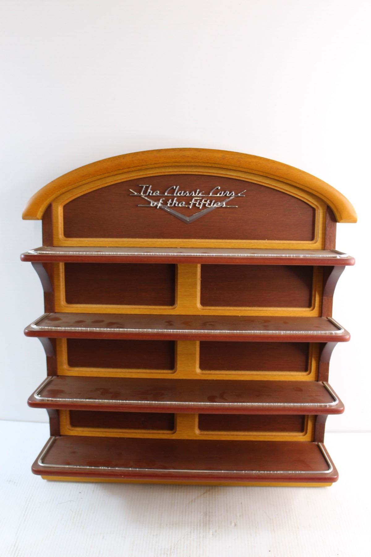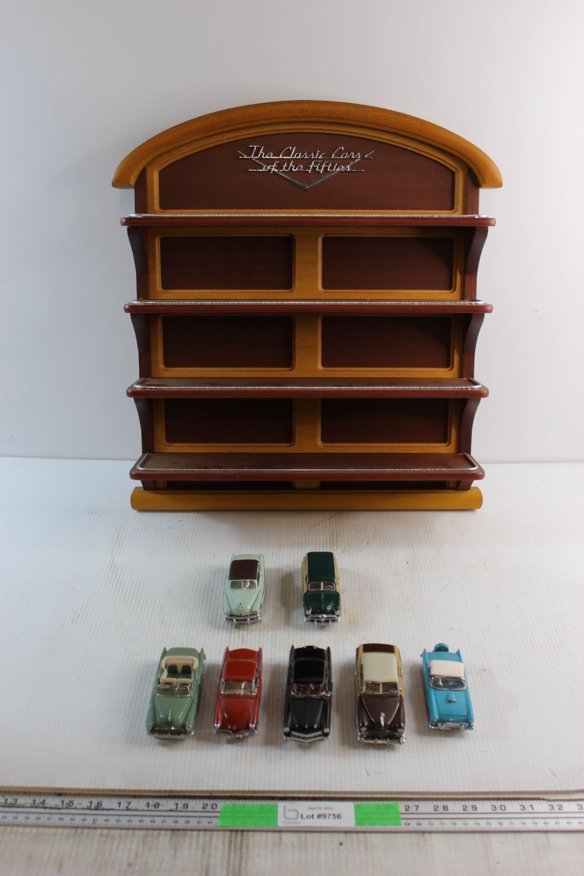 The Classic Wooden Cars of the Fifties Shelf and (7) Assorted Cast Iron Car Models