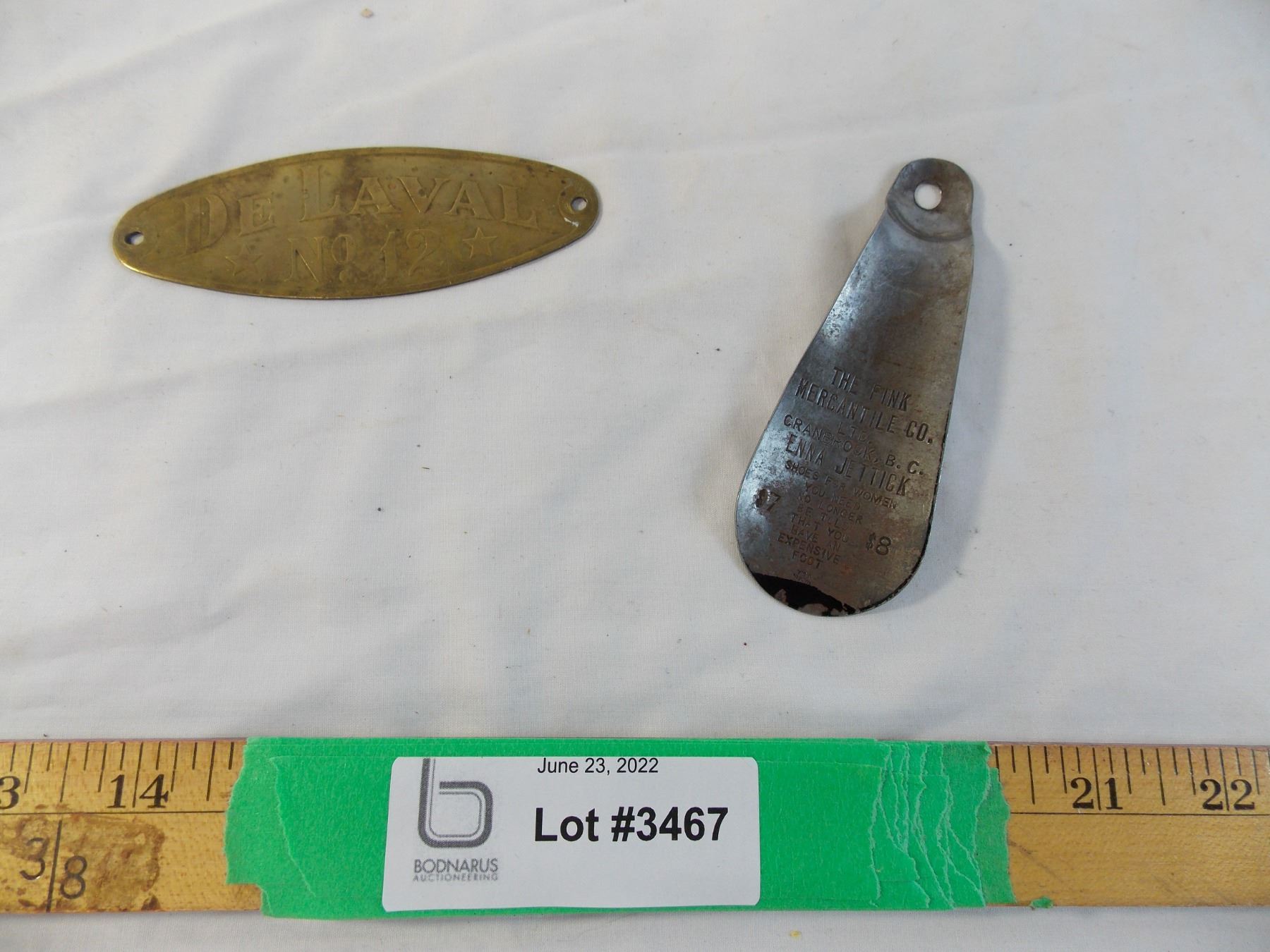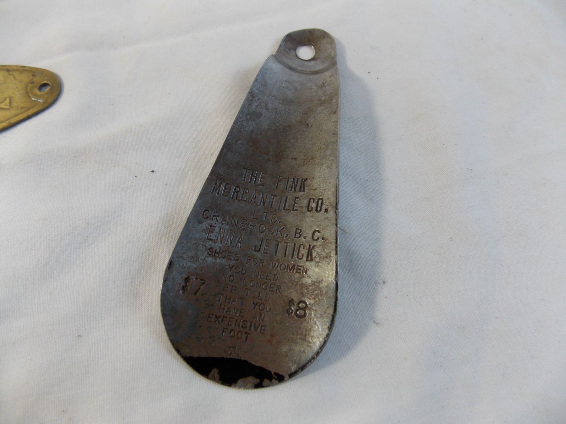 "The Fink Mercantile" Cranbrook BC shoe Horn and brass nameplate