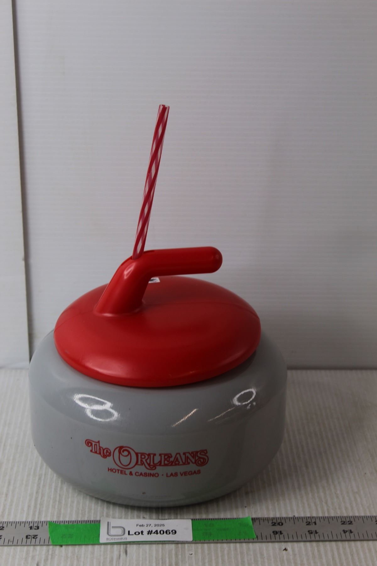 The Orleans Hotel Curling Rock Beverage Holder 12" Tall with Straw