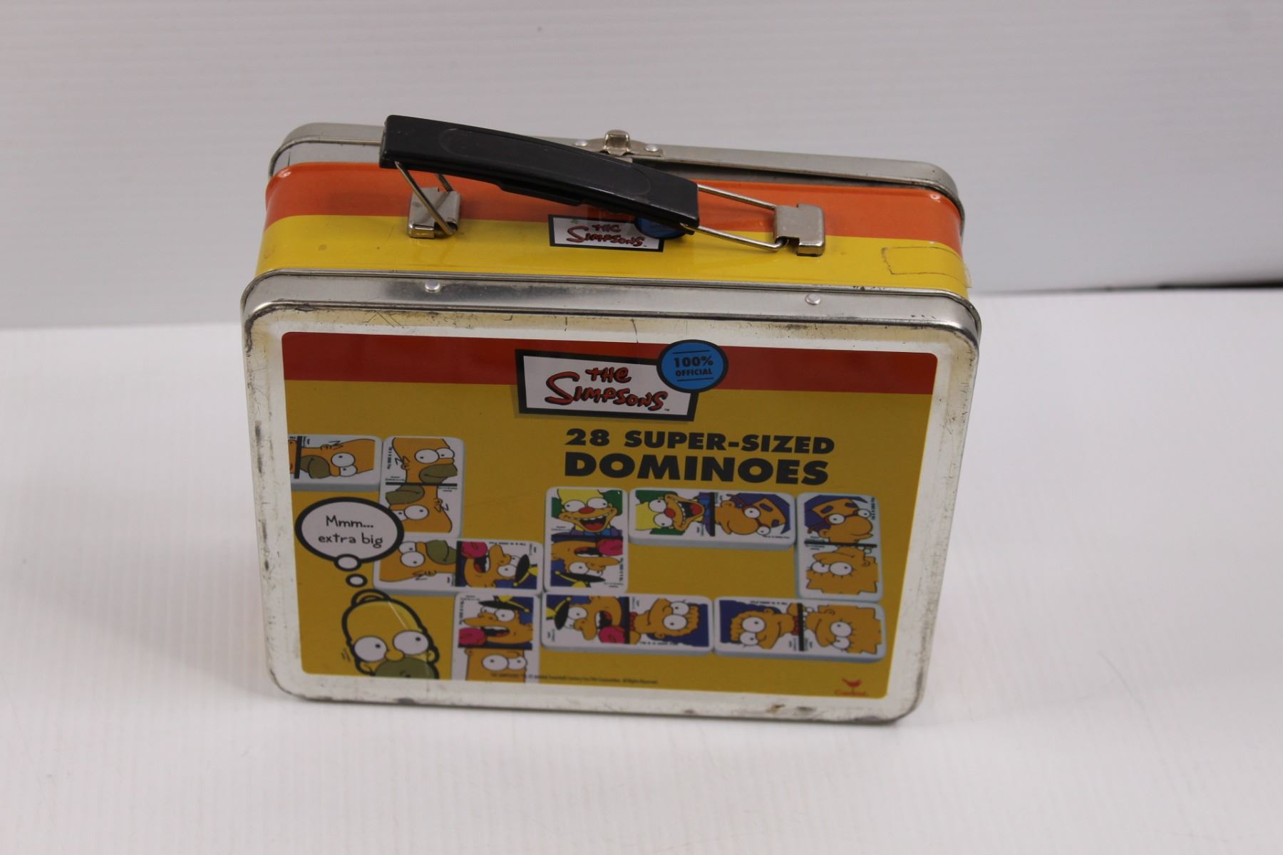 "The Simpsons" (16 of 28 pc) Domino Set w/Tin & Heart Tin of Caramel Popcorn (Factory Sealed)
