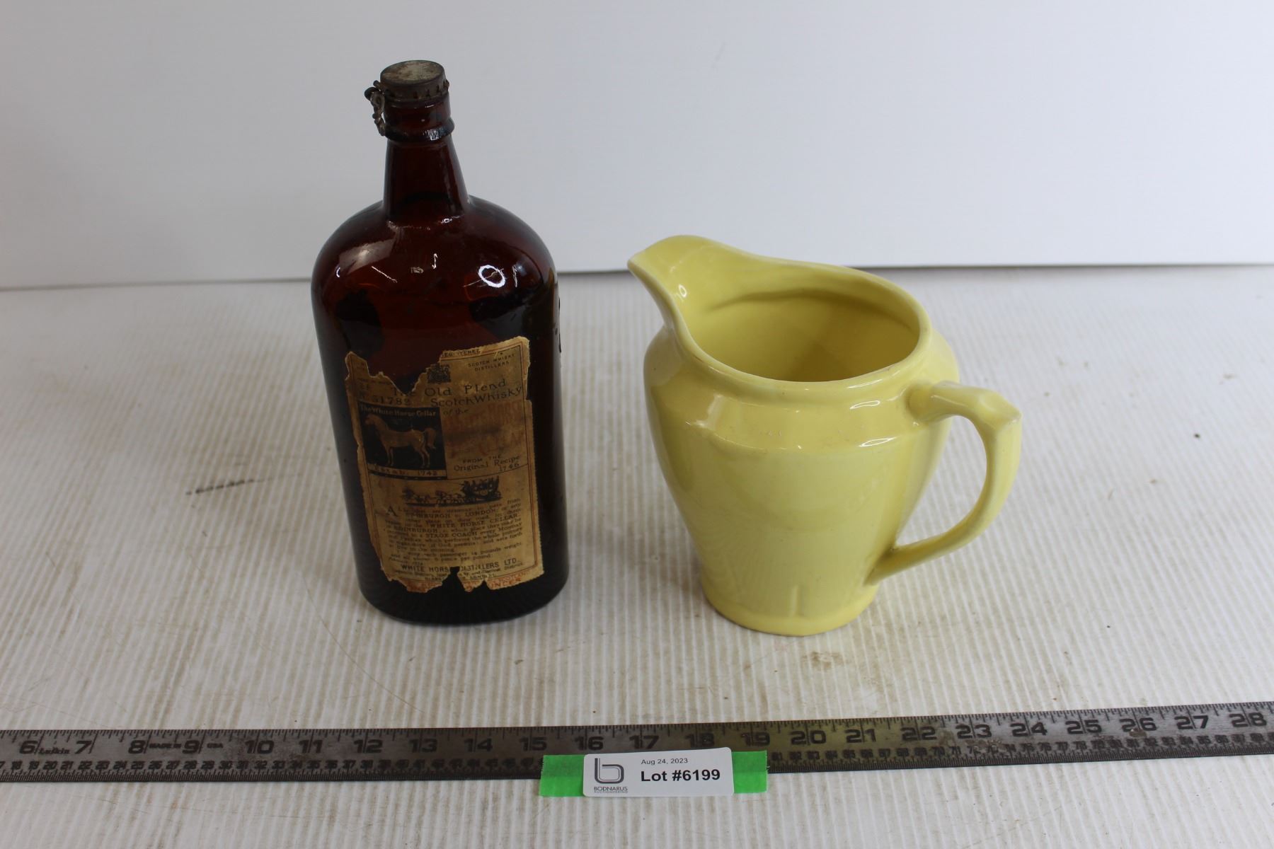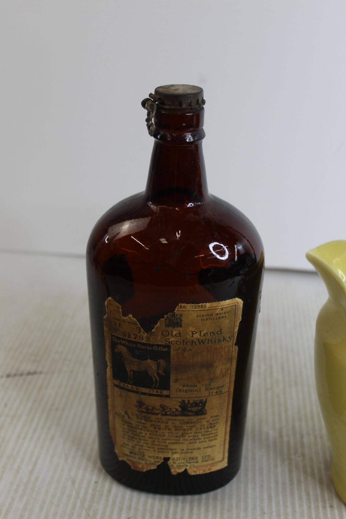 The White Horse Cellar Scotch Whiskey Bottle, Yellow Medalta Pitcher