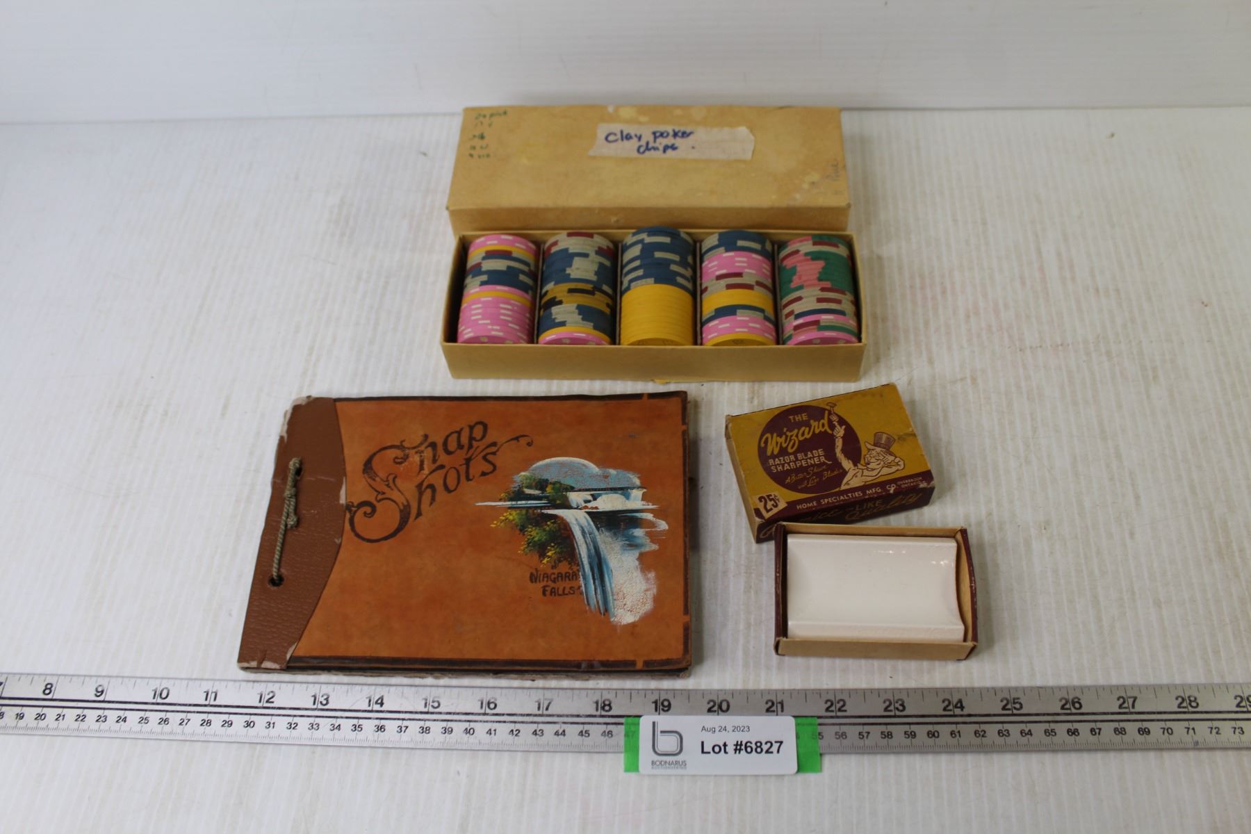 The Wizard Vintage Blade Sharpener - Vintage Clay Poker Chips - Niagara Falls Vintage Snap Shot Photo Album