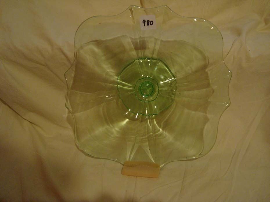 Tiered Green Uranium Glass Cake Plate