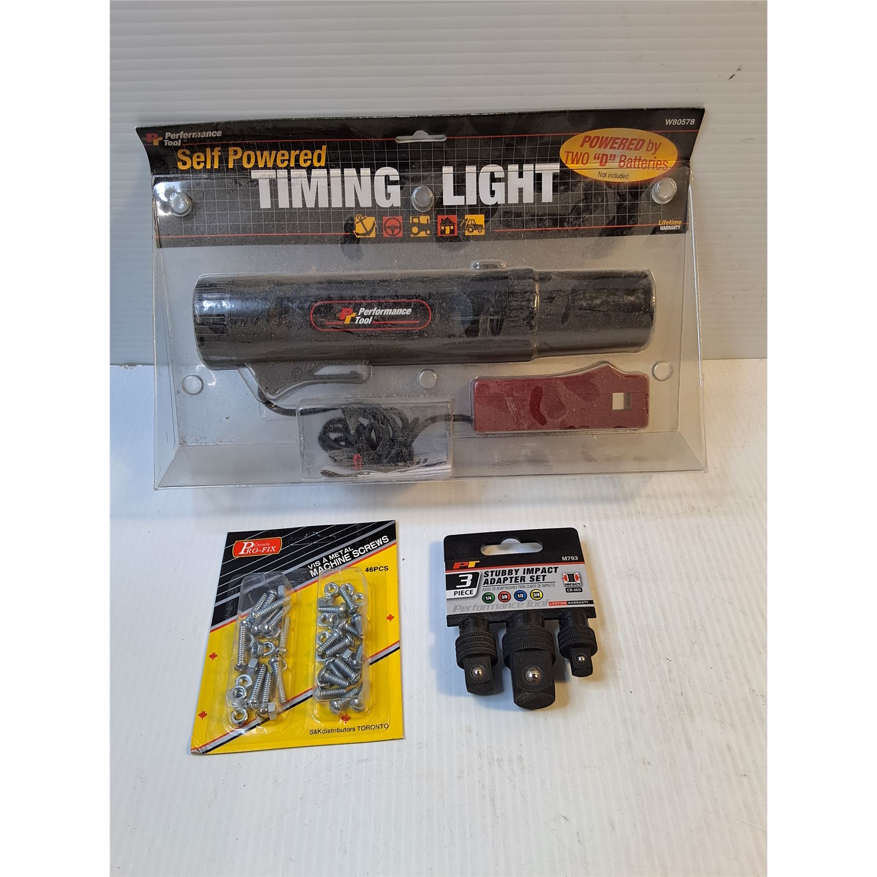 Timing Light,Socket Set,Adapter Set,Pegboard Hooks,Impact Adapter Set and Misc. Hardware