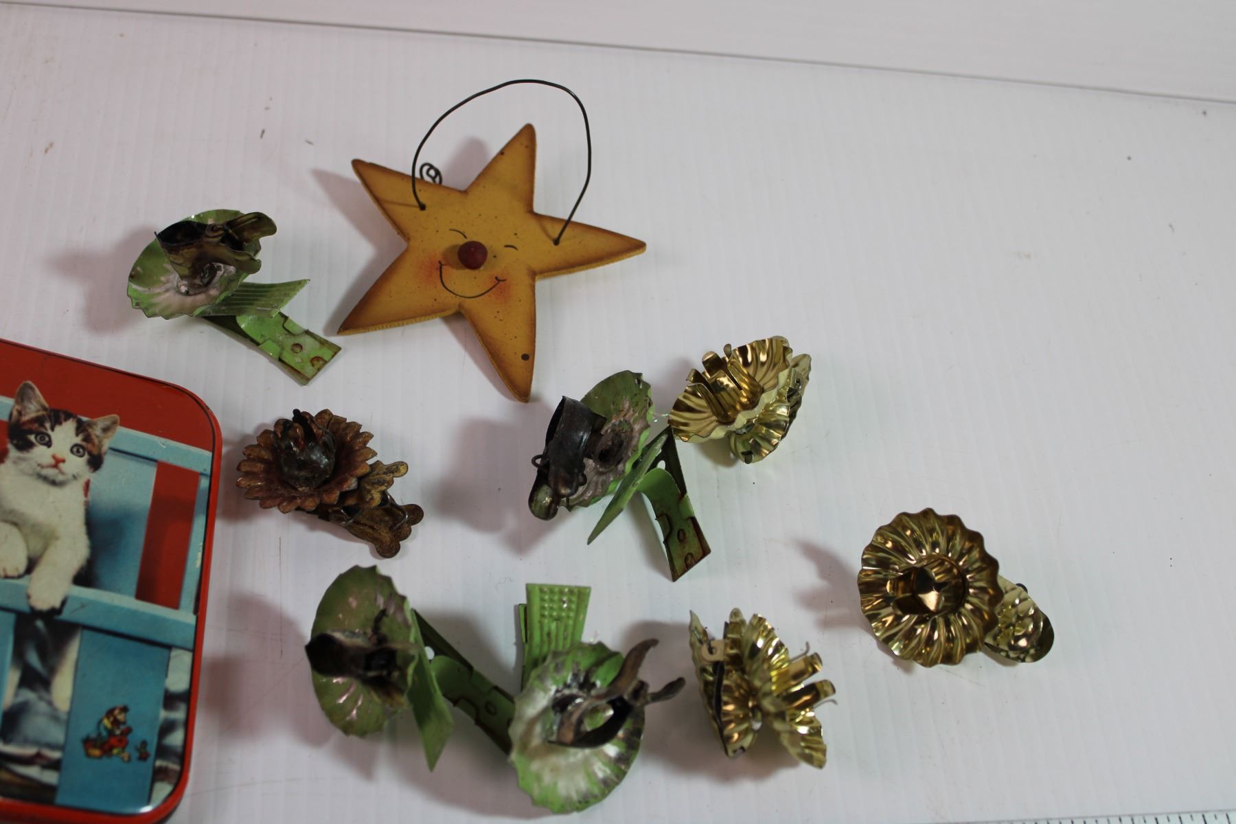 Tin w/ Marbles, Framed Picture, (9) Christmas Ornaments