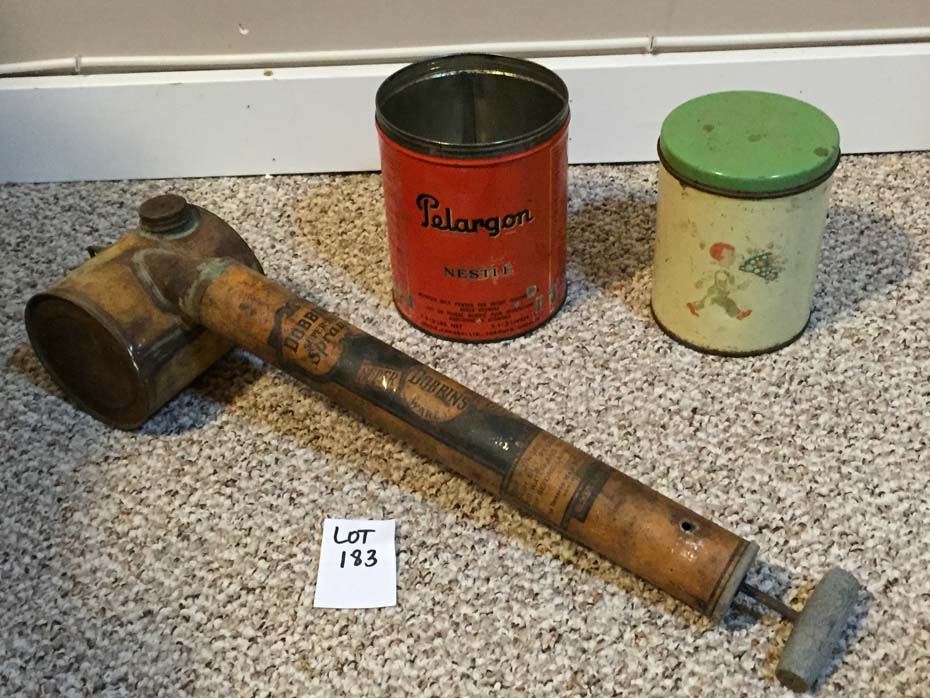 Dobbins Sprayer, Nestle Tin, Decorator Tin (very old)