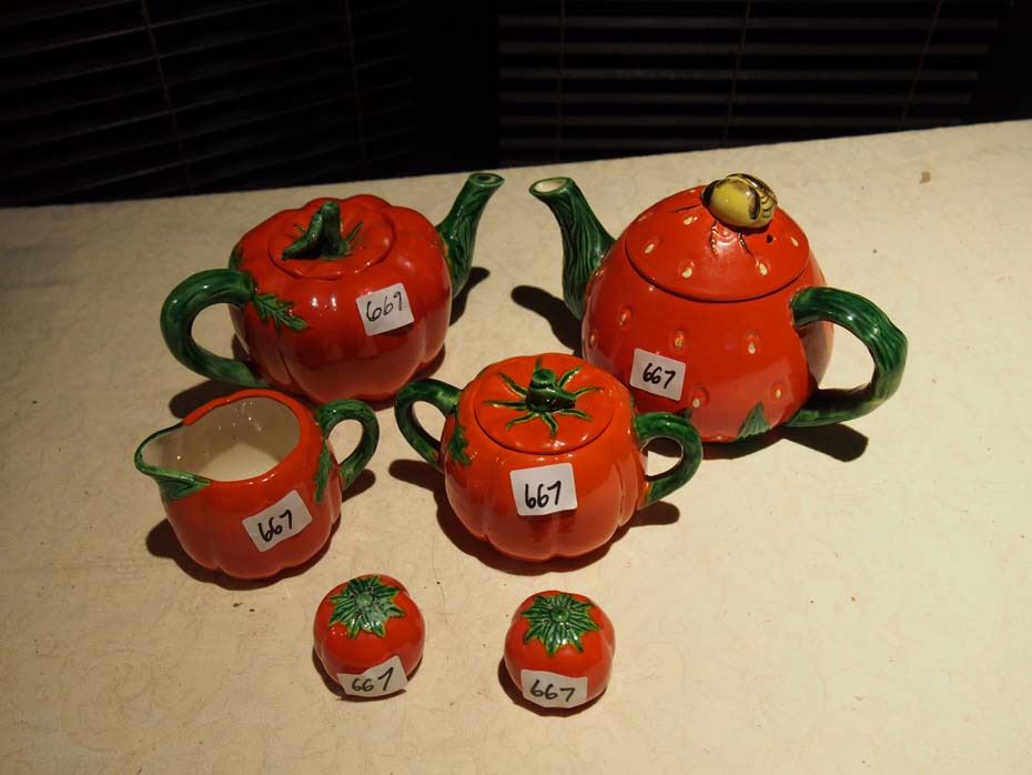 Tomato Set 6 pcs - Tea Pots (2) - Cream & Sugar - S&P Shakers