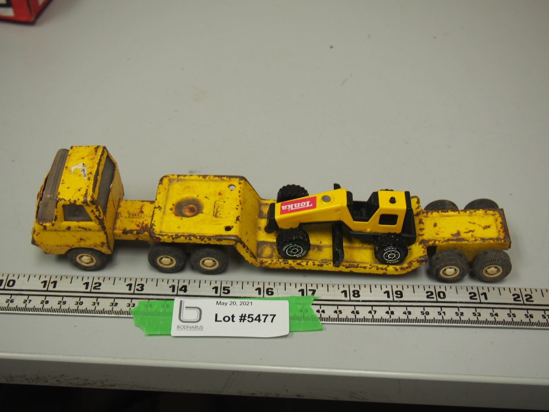 Tonka Toy Semi and Trailer with Tonka Grader (Semi Trailer 11" Long) (Grader 3" Long)