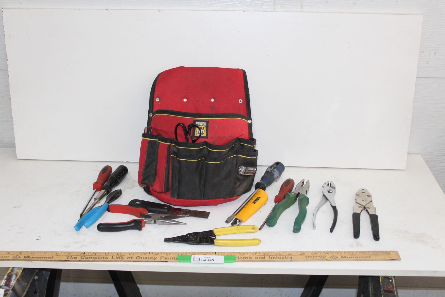 Tool Belt, Screwdrivers, Pliers, Side Cutters, Scissors, Safety Knife, etc.