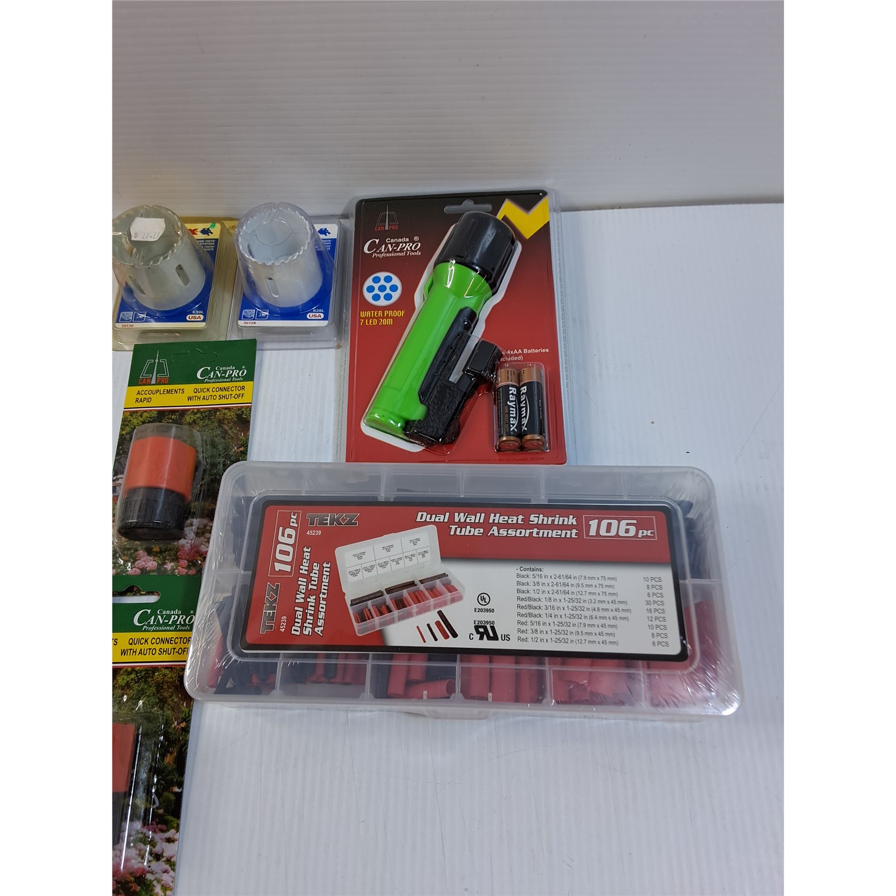 Tool Lot: Snap Ring Pliers, Heat Shrink, Pry Tools, Hole Saws, Misc