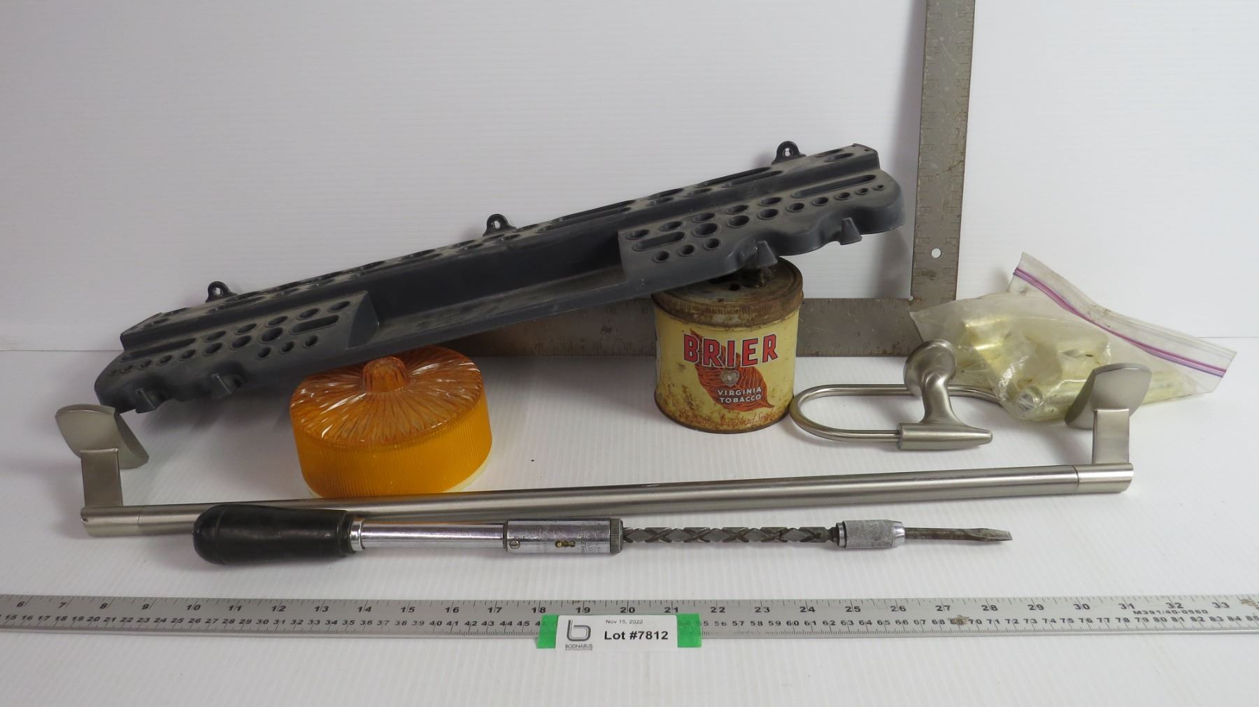 *Tool Organizer - 2' Square - Vintage Hand Drill - Towel Bar & Toilet Paper Holders - Vintage Plastic Powder Box