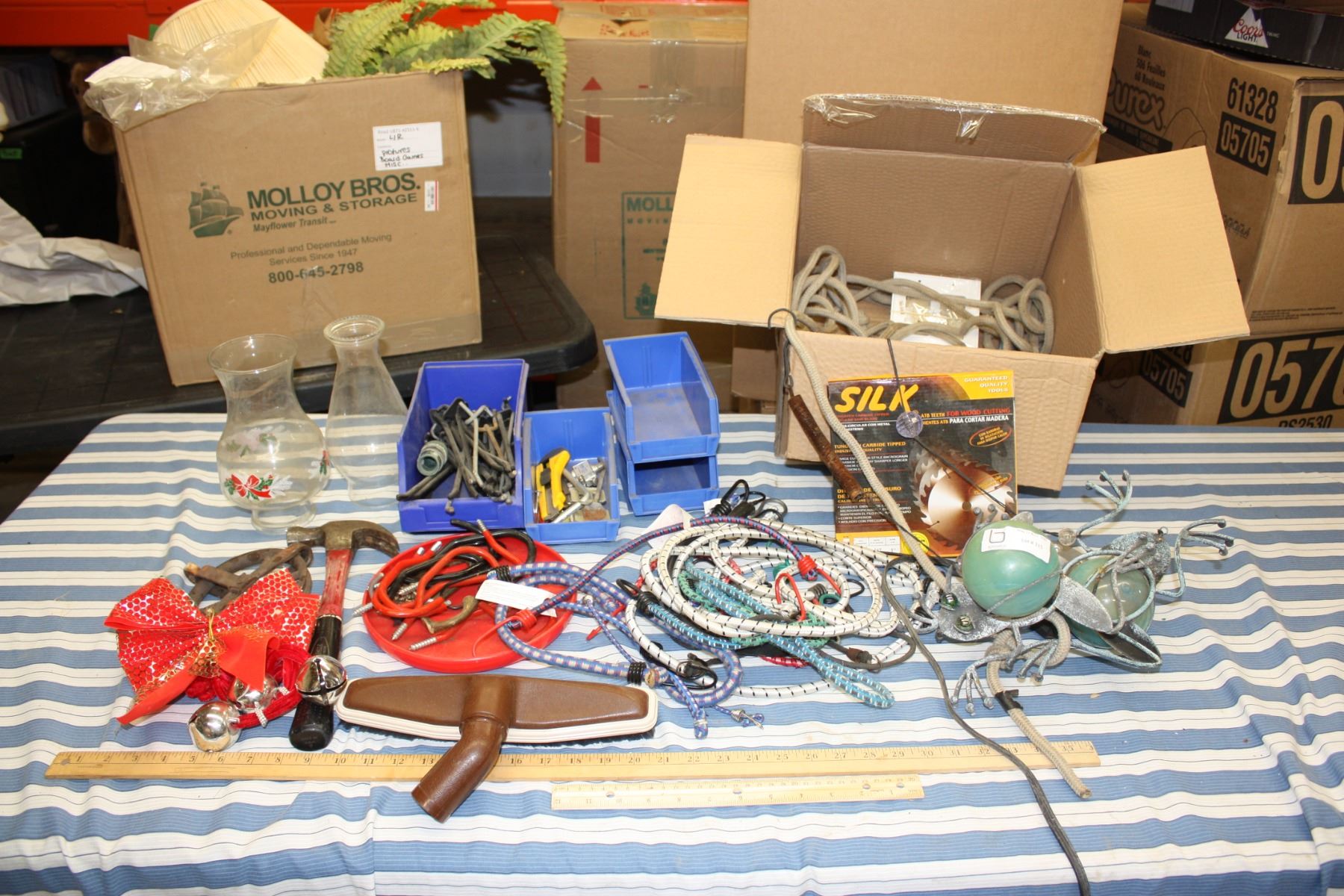 Tool Trays, Blades, Bungee Cords, Hammer, 2 Lamp Heads, etc