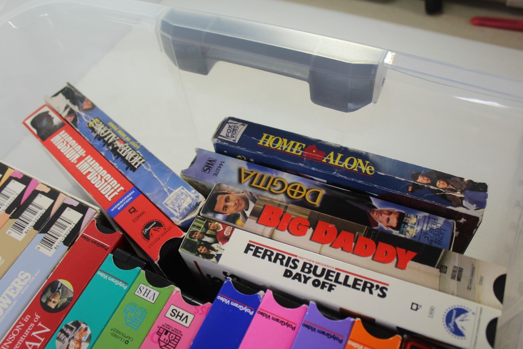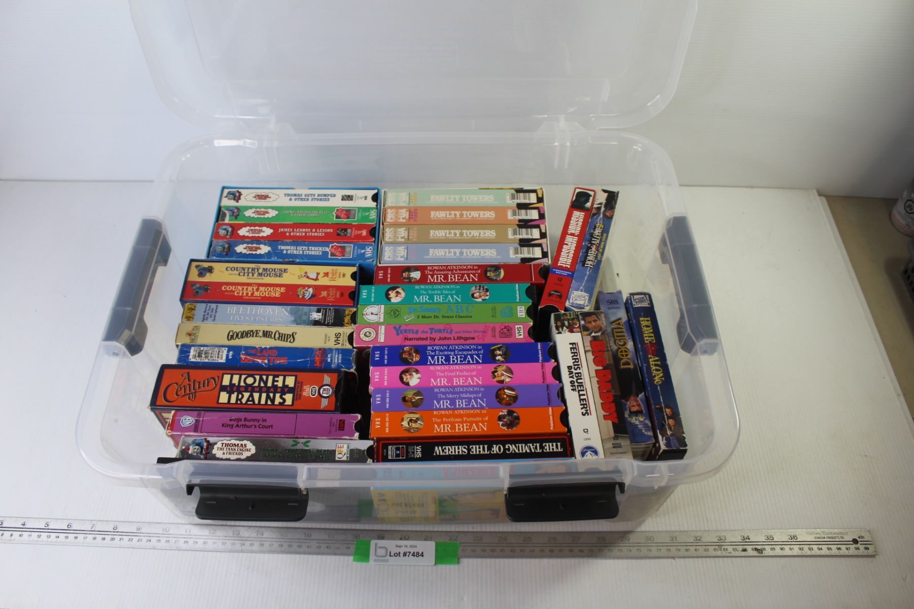 Tote w/Lid - (32) VHS Tapes - Children's - Family - Mr. Bean