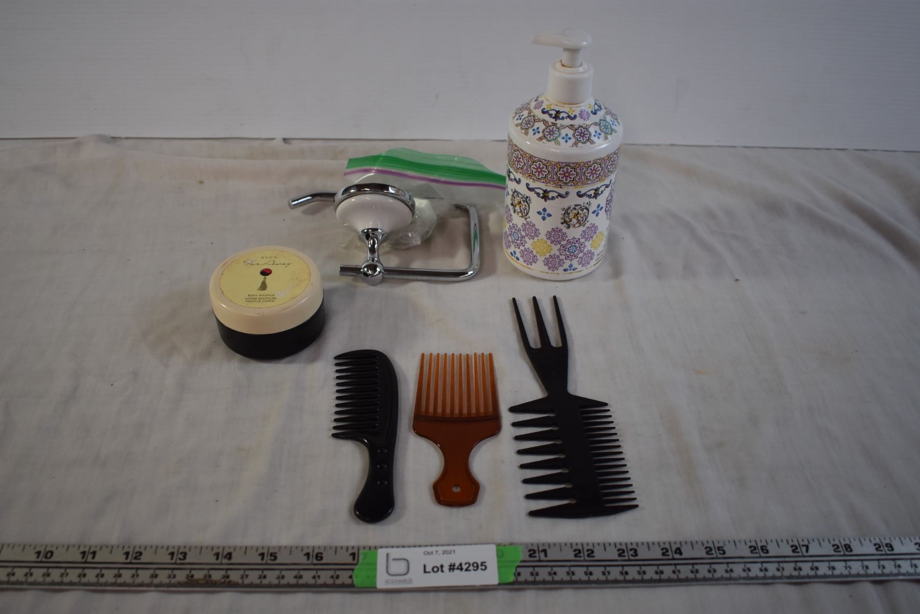 Towel Hanger, Plastic Combs, Avon Cream, and Plastic Bottle