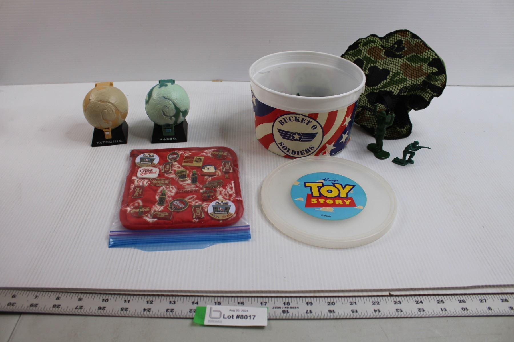 Toy Story Soldiers, (2) Star Wars Toys, Coca-Cola Pins