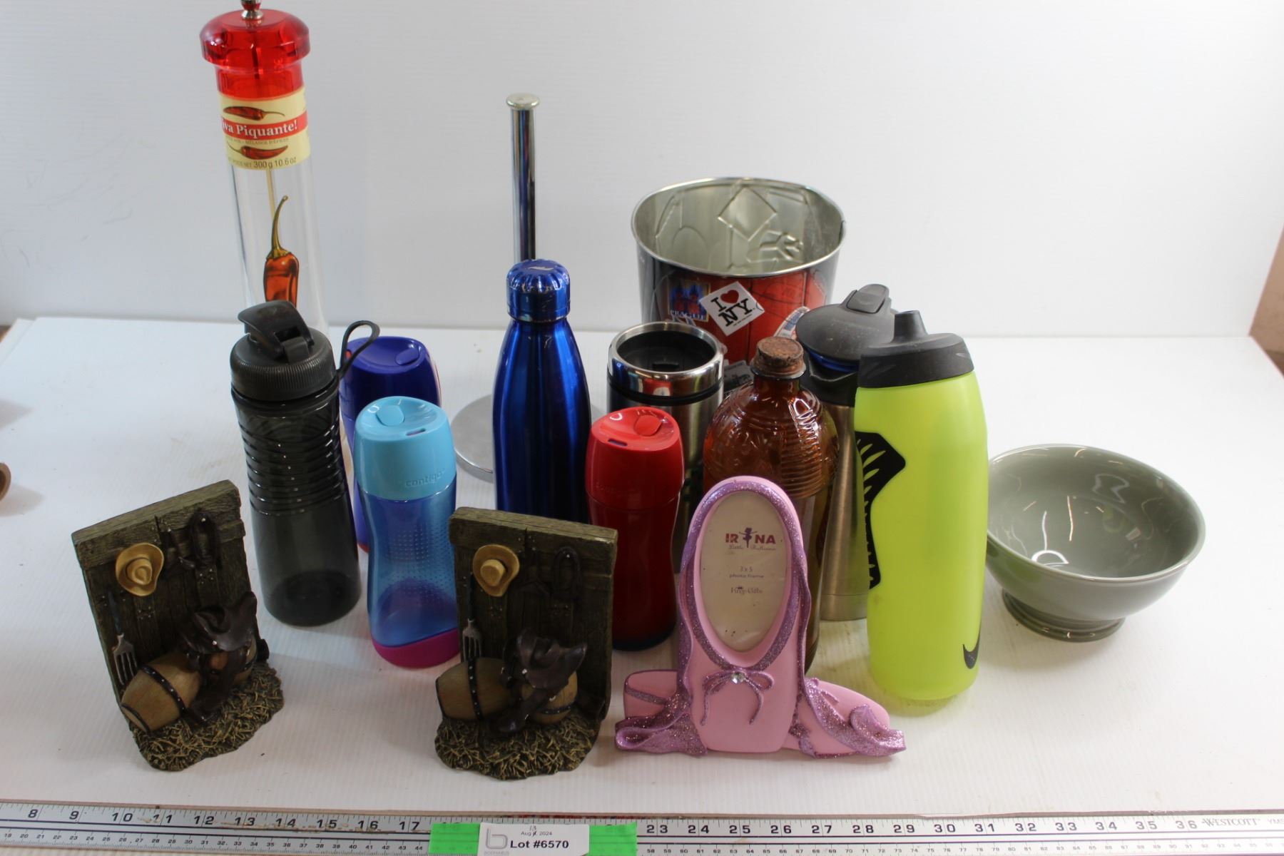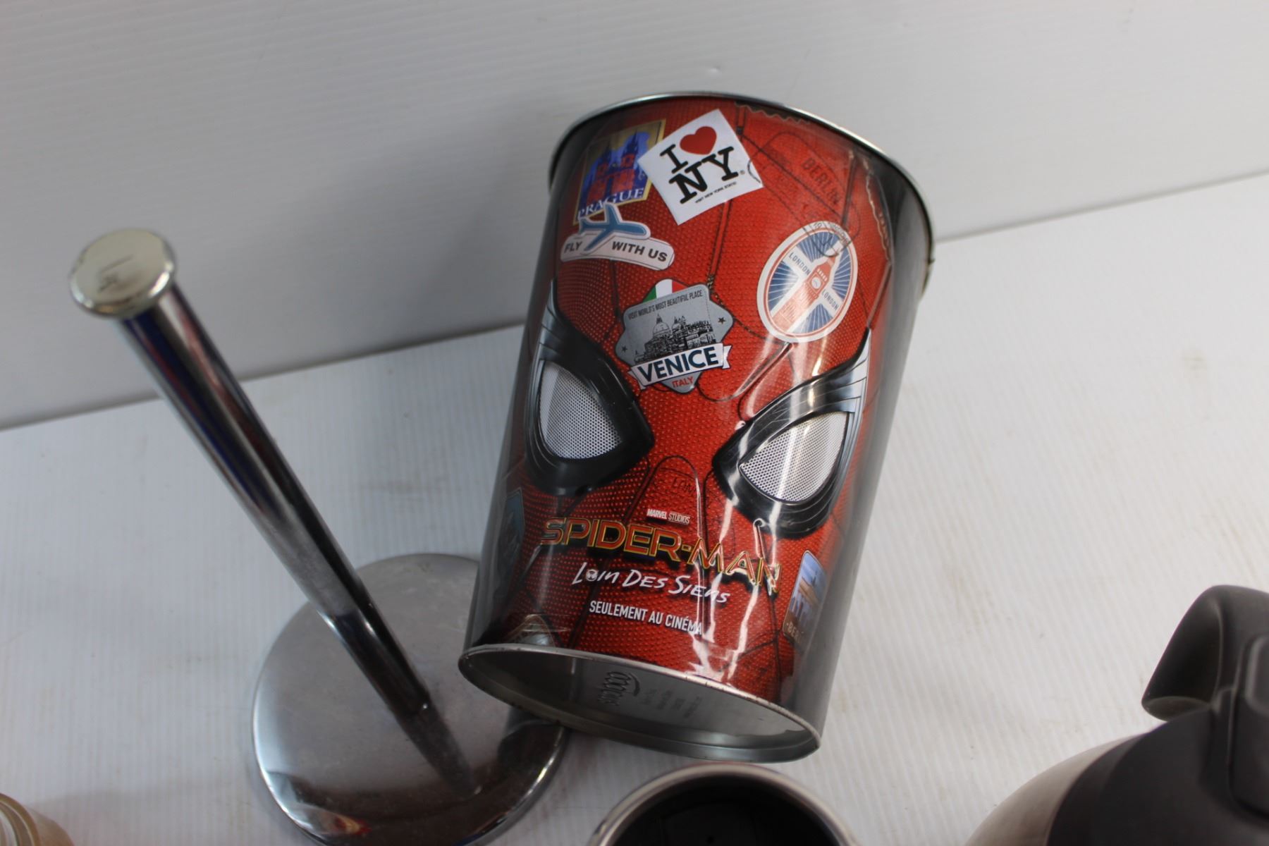 Travel Mugs and Water Bottles, Spider Man Bucket, Bowl and Misc.