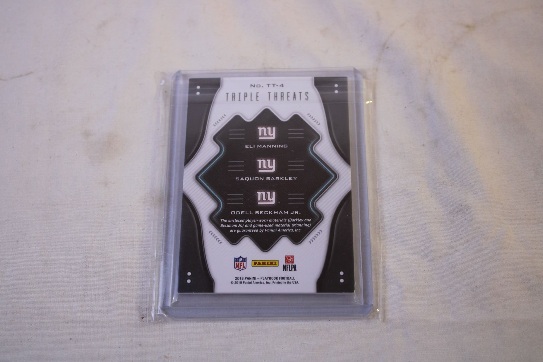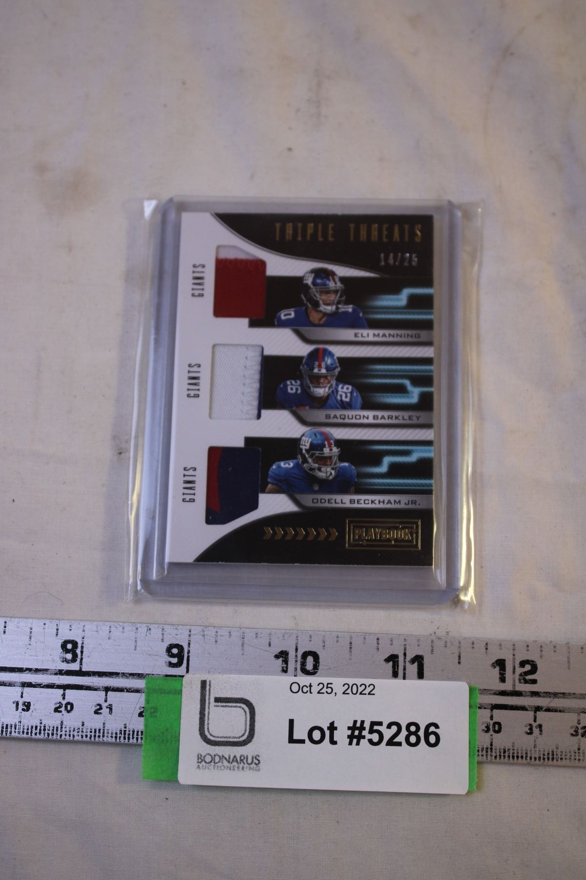 Triple Threat Game Worn Jersey Card 14/25 (Eli Manning, Saquon Barkley, and Odell Beckham Jr)